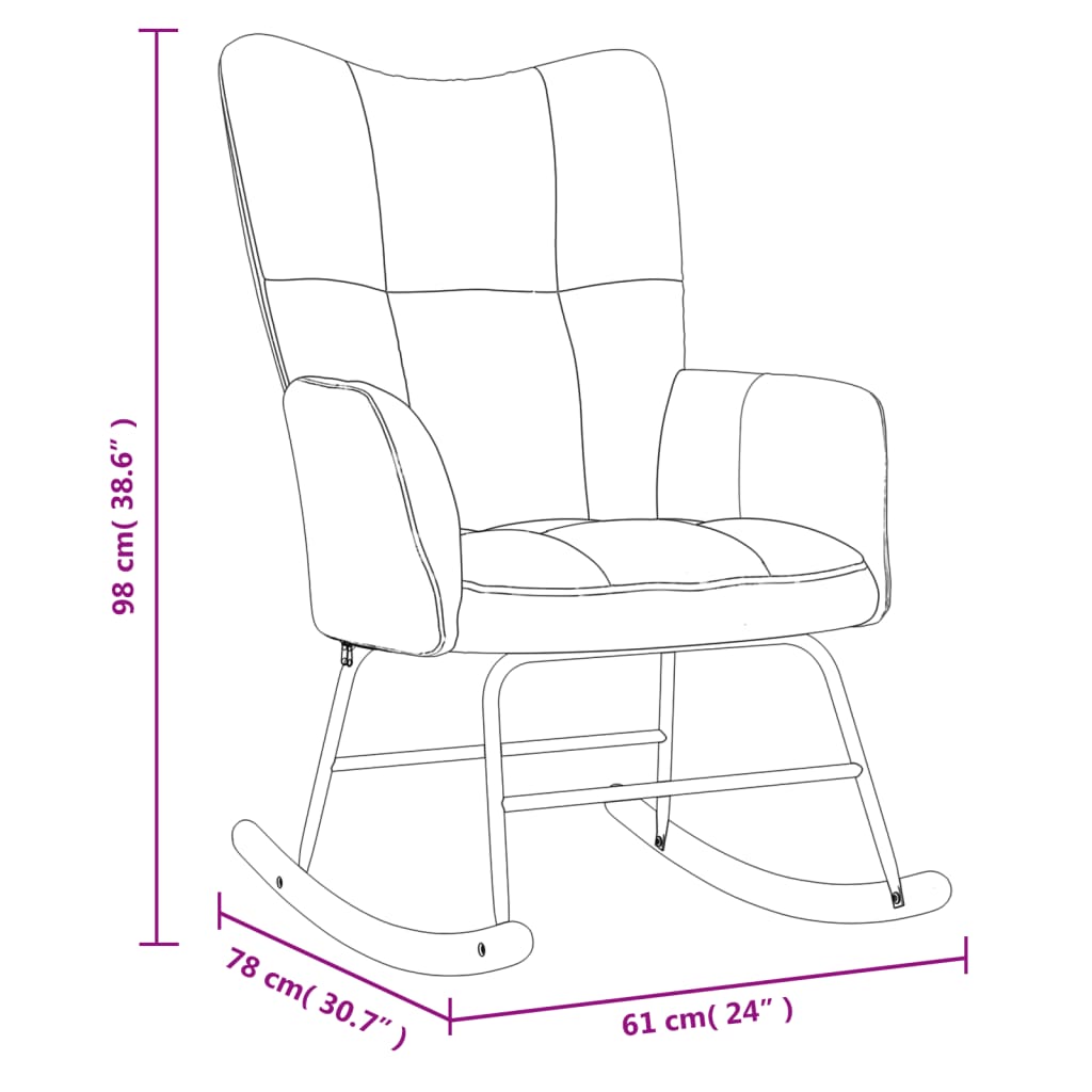A négyzetes varrásoknak köszönhetően a pihenőszék gyönyörű megjelenésű. A vastag habszivacs párnázás és a puha tapintású bársonykárpit optimális kényelmet nyújt. A hosszú talpak miatt a fotel nehezen fog felborulni. Emellett az acélváznak és a lábaknak, valamint a fa hinta talpaknak köszönhetően a nappaliszék stabil és tartós.