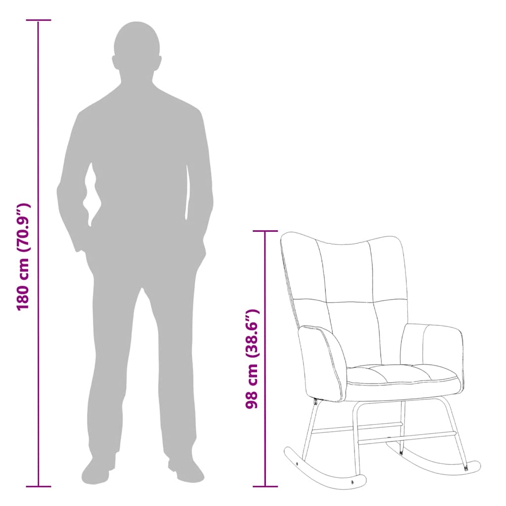 A négyzetes varrásoknak köszönhetően a pihenőszék gyönyörű megjelenésű. A vastag habszivacs párnázás és a puha tapintású bársonykárpit optimális kényelmet nyújt. A hosszú talpak miatt a fotel nehezen fog felborulni. Emellett az acélváznak és a lábaknak, valamint a fa hinta talpaknak köszönhetően a nappaliszék stabil és tartós.