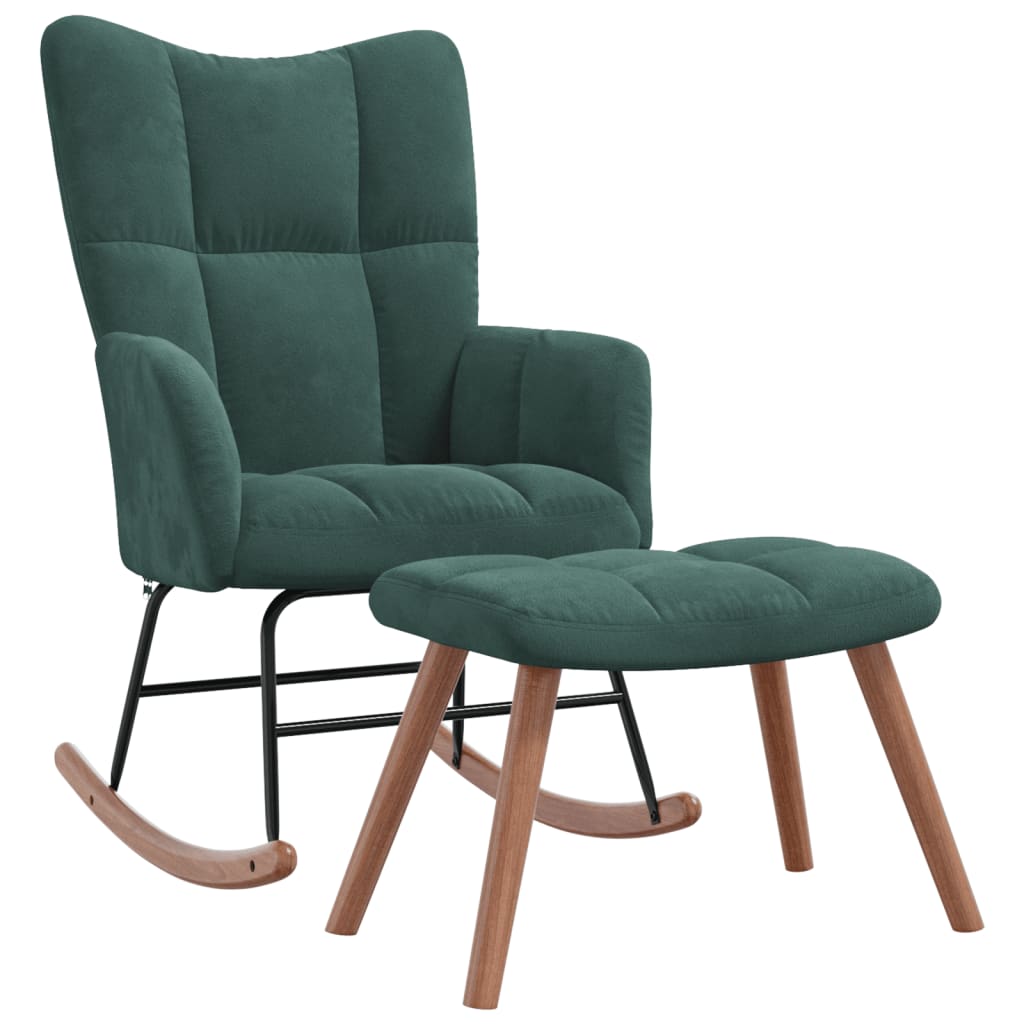 A négyzetes varrásoknak köszönhetően a pihenőszék gyönyörű megjelenésű. A vastag habszivacsos párnázás és a puha tapintású bársonykárpit optimális kényelmet nyújt. A hosszú talpak miatt a fotel nehezen fog felborulni. Emellett az acélváznak és a lábaknak, valamint a fa hintatalpaknak köszönhetően a nappaliszék és a lábtartó stabil és tartós.