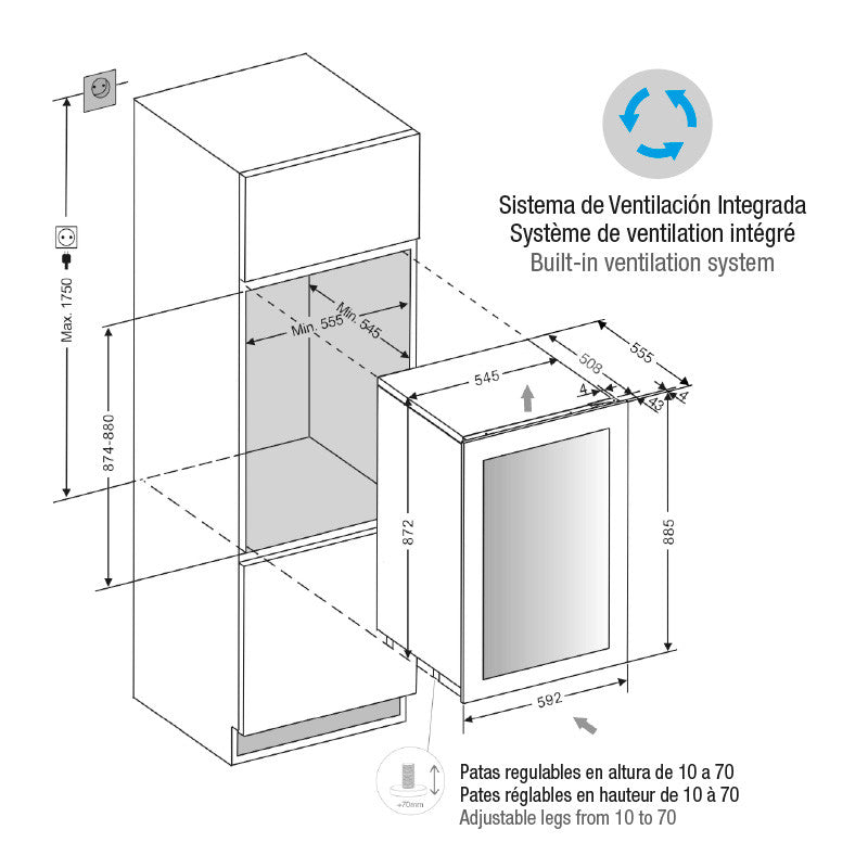 Pando PVMAV 88-49CRL borhűtő - beépíthető, fekete, balos