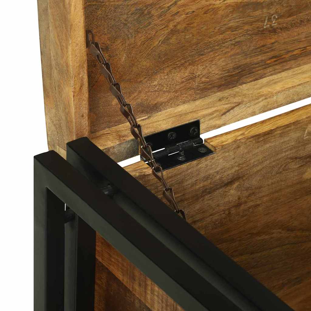 - Anyagok: A tömör fa használatával készült tároló doboz kellemes, masszív textúrája van, ami melegséget és hitelességet ad a térnek. A vas keret erőt ad, garantálva a tartósságot, így ez egy szilárd befektetés az otthonodban.