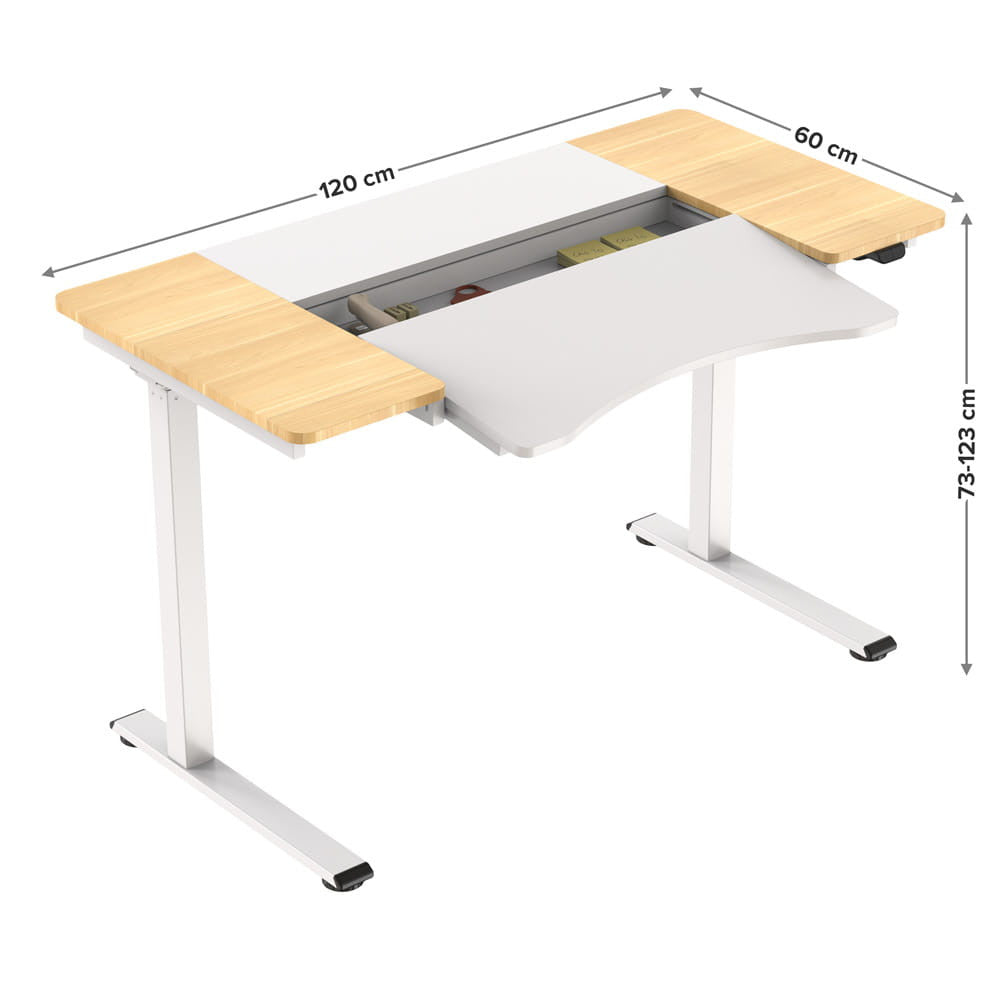 Ez az állítható magasságú íróasztal egy innovatív megoldás, amely tökéletesen megfelel a modern igényeknek. A 73 és 123 cm közötti elektromos magasságállításnak köszönhetően a felhasználók könnyedén a kívánt munkapozícióba állíthatják. Akár kényelmes ülésre van szükségük a számítógépnél, akár egy pillanatra álló munkára, ez az íróasztal könnyen alkalmazkodik az egyéni igényekhez. Ideális minden korosztály és magasságú ember számára, optimális teret biztosítva a kívánt pozíció megtartásához. A gyors és sima asztallap-állításnak köszönhetően a felhasználók ergonomikus munkaterületet élvezhetnek, amely egész nap támogatja egészségüket és kényelmüket.