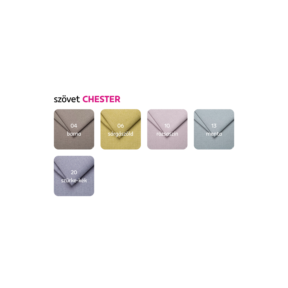 Megrendelhető 5 színváltozatban Chester szövetből, ár: kanapé - 121 500 Ft, puff: 54 900 Ft. Egyedi megrendelés esetén szükség van az adott összegnek a 20%-át befizetni,mint előleg. Az előleg befizetése után az Ön követelményét benyújtjuk a gyártónak. Szállítási idő: 6-8 hét.