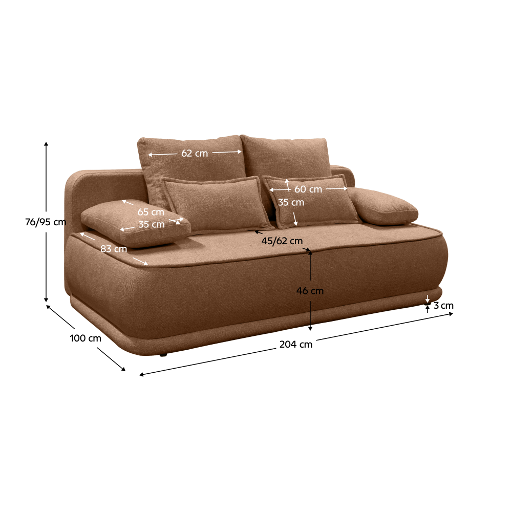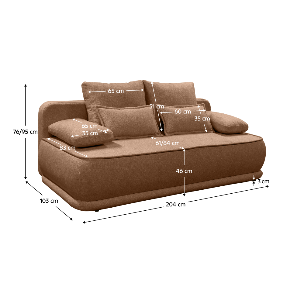 Méretek (SzxMéxMa): 204x103x76/95 cm