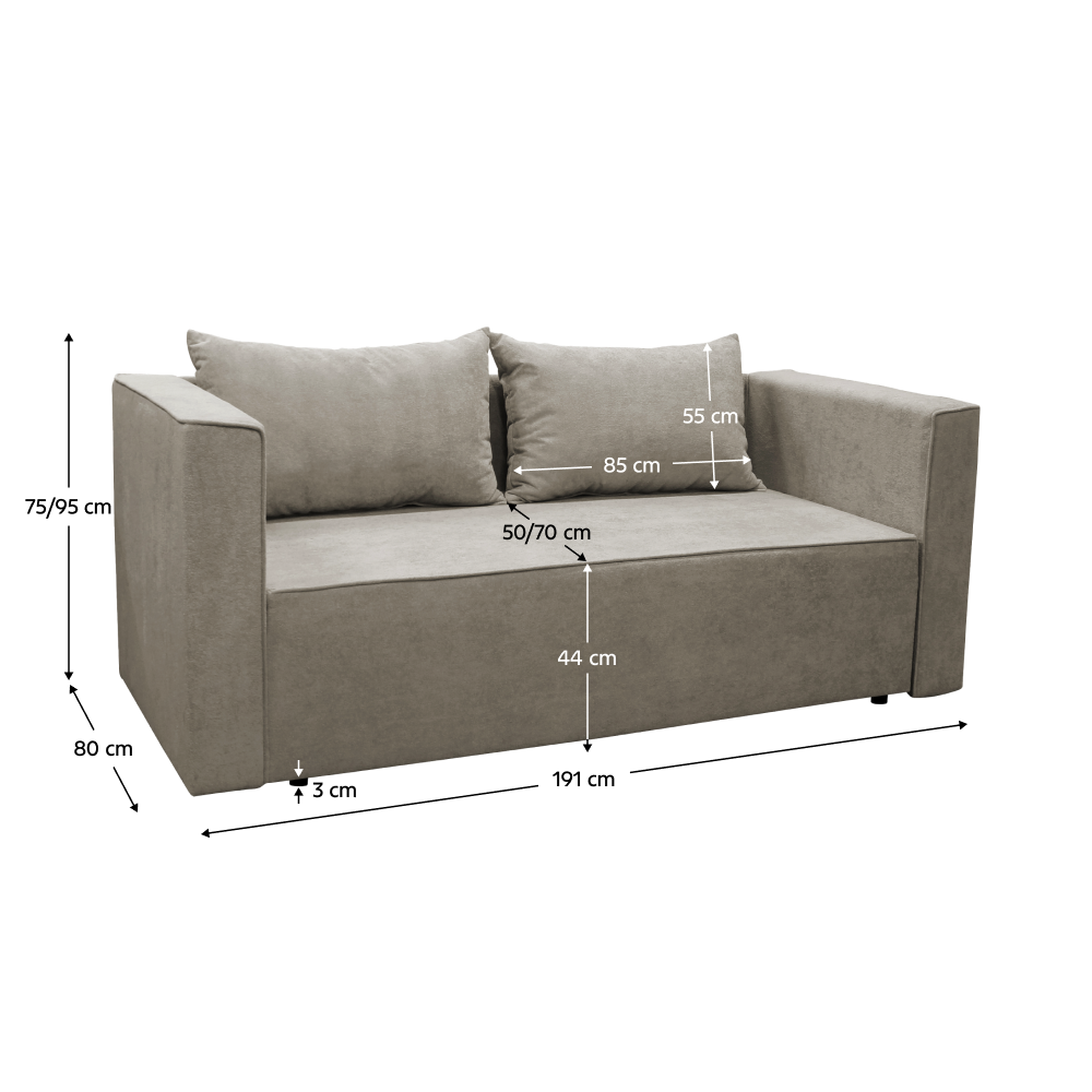 Méretek (SzxMéxMa): 191x80x75/95 cm