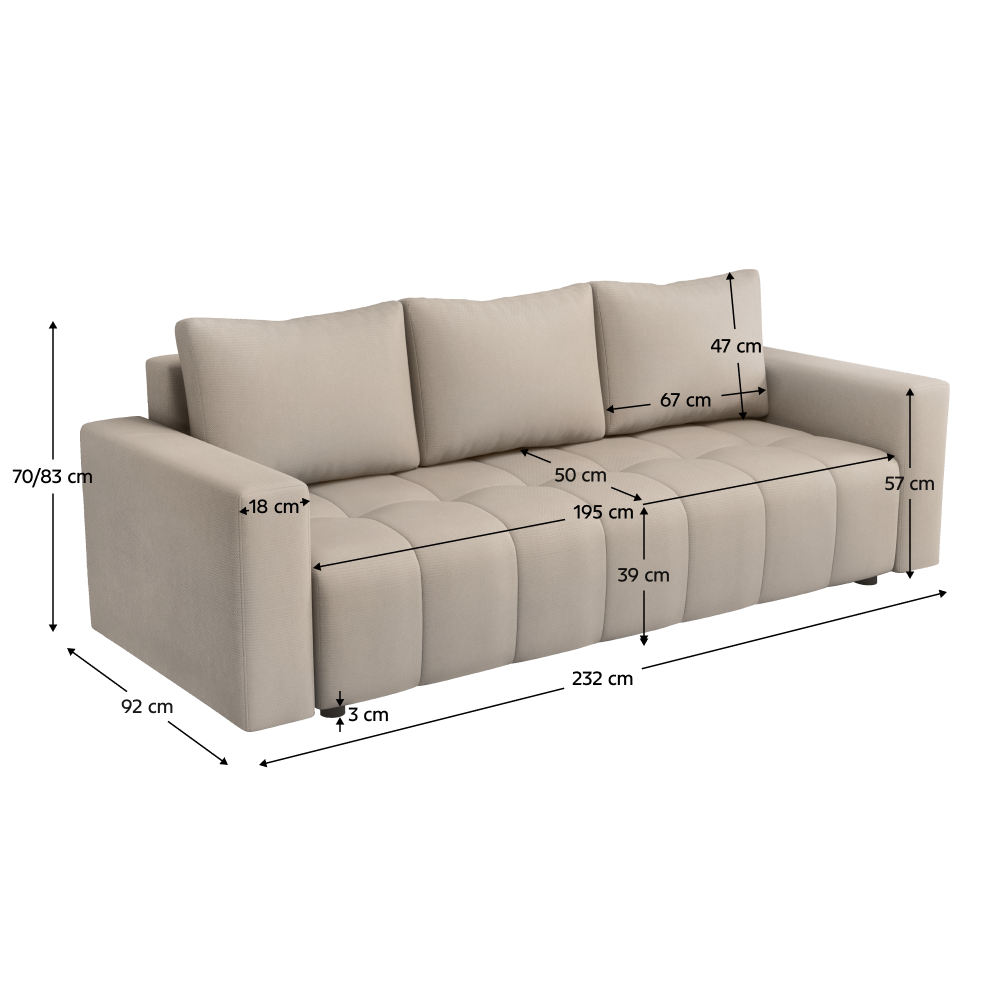 Méretek (SzxMéxMa): 232x92x70/83 cm