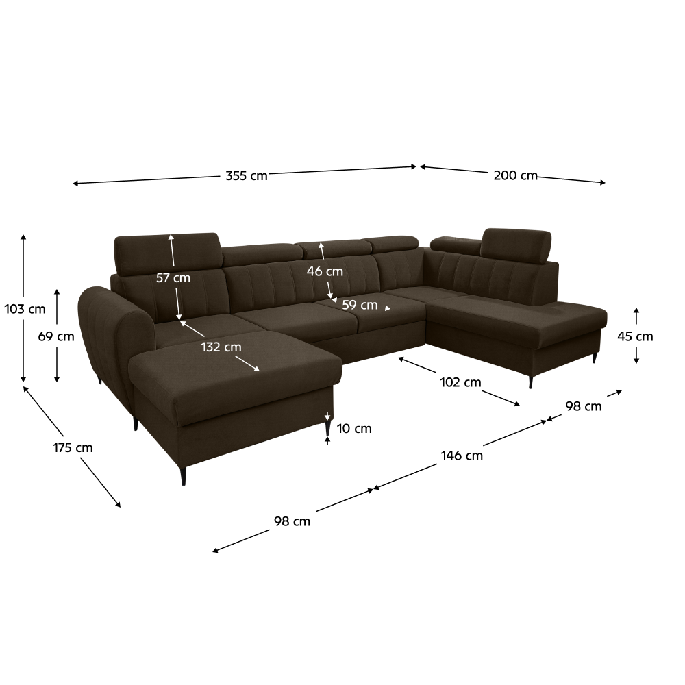 Méretek (SzxMéxMa): 355x200/175x103cm