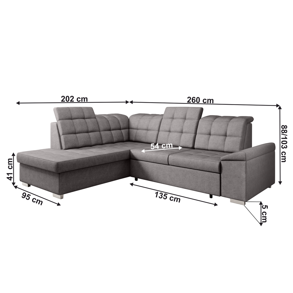Méretek (SzxMéxMa): 260x202x88/103 cm