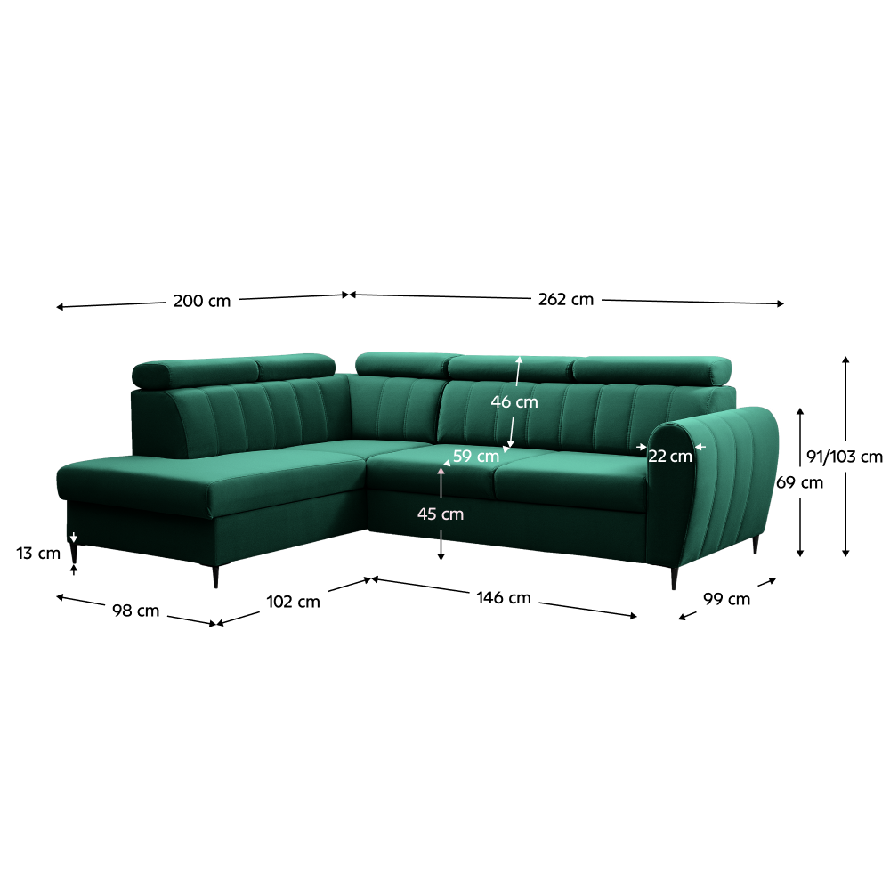 Méretek (SzxMéxMa): 262x200x91/103 cm