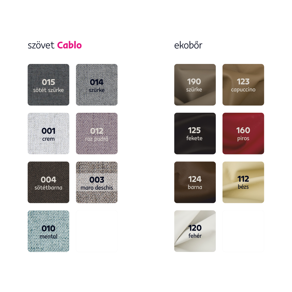 Rendelhető 7-féle színváltozatban Cablo szövetből