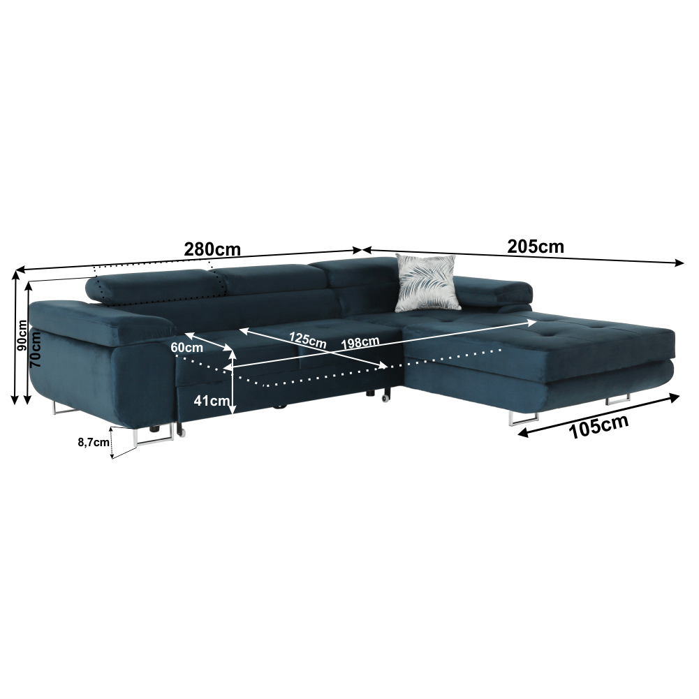 Méretek (SzéxMéxMa): 280x205x70/90 cm