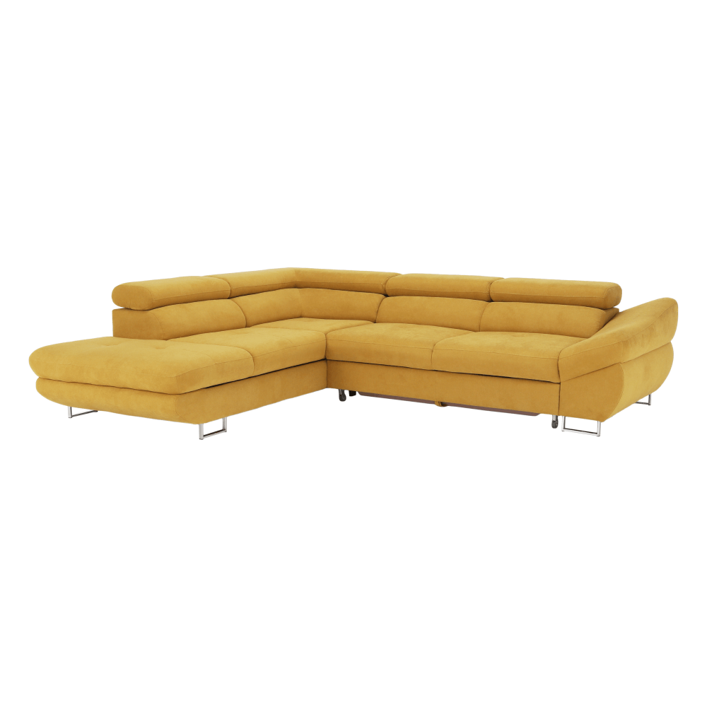 Kinyitható ülőgarnitúra FABIA (bal sarok) rakodótérrel mustár színű szövetben.