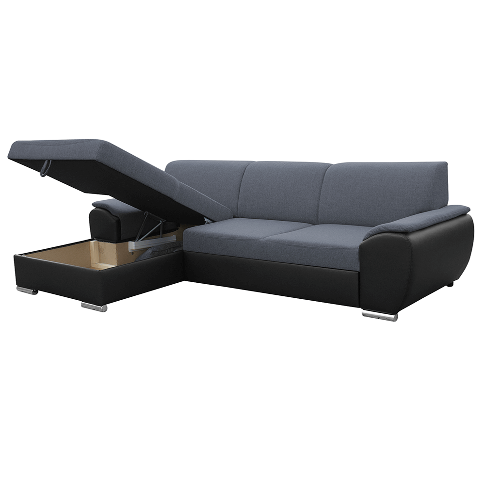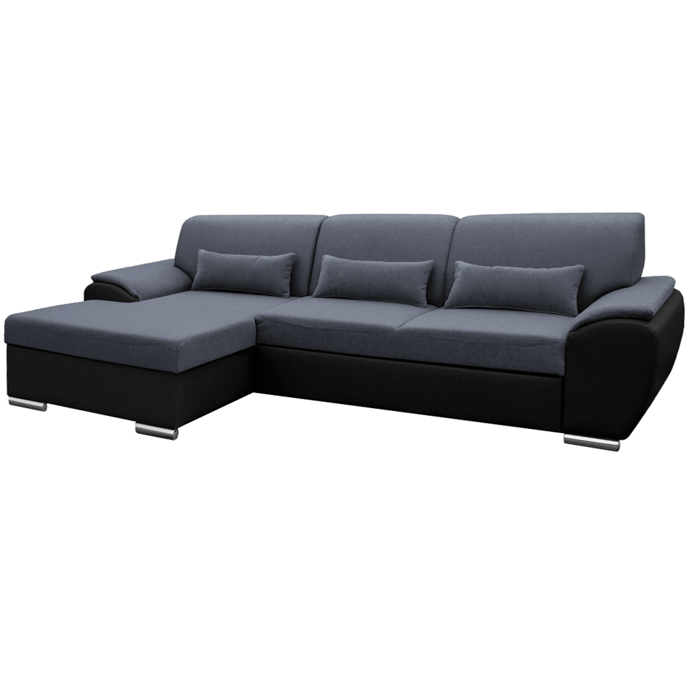 Kárpitozott sarokülőgarnitúra EMILY ROH MALÝ rakodótérrel, Balos változat, Anyag: textilbőr fekete / szövet Soro 97 sötét szürke,