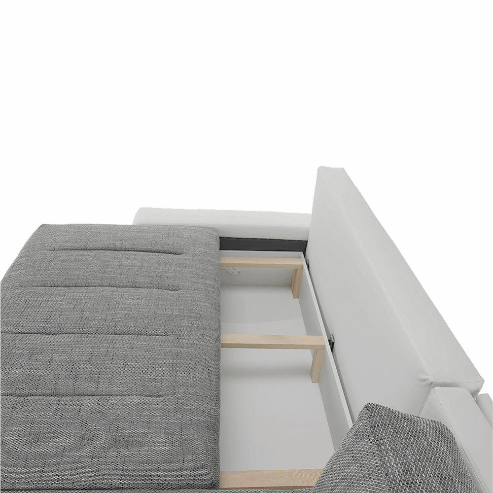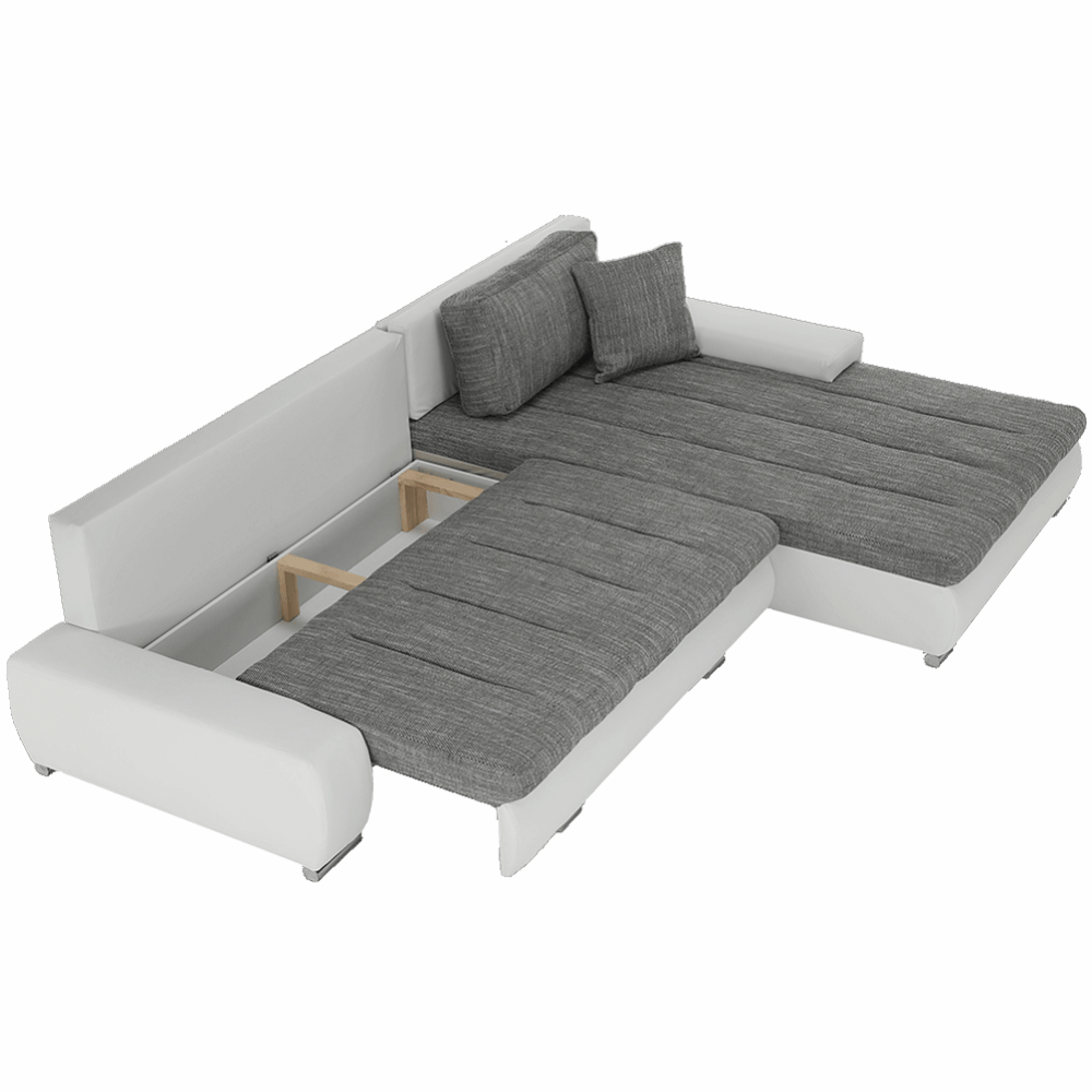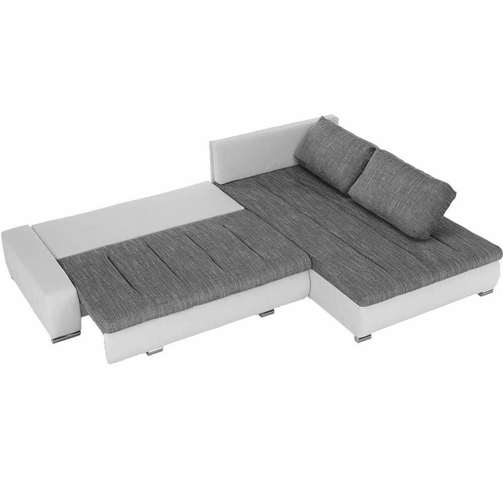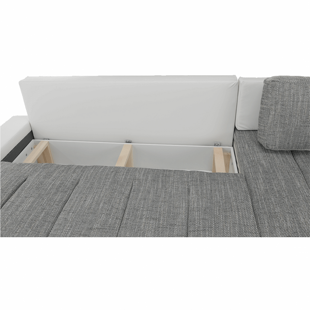 Kinyitható kárpitozott sarokülőgarnitúra rakodótérrel,