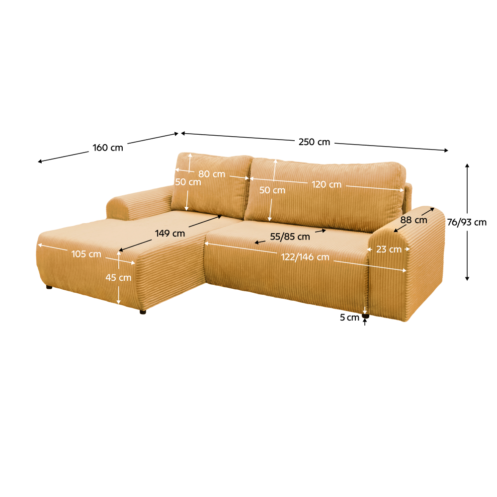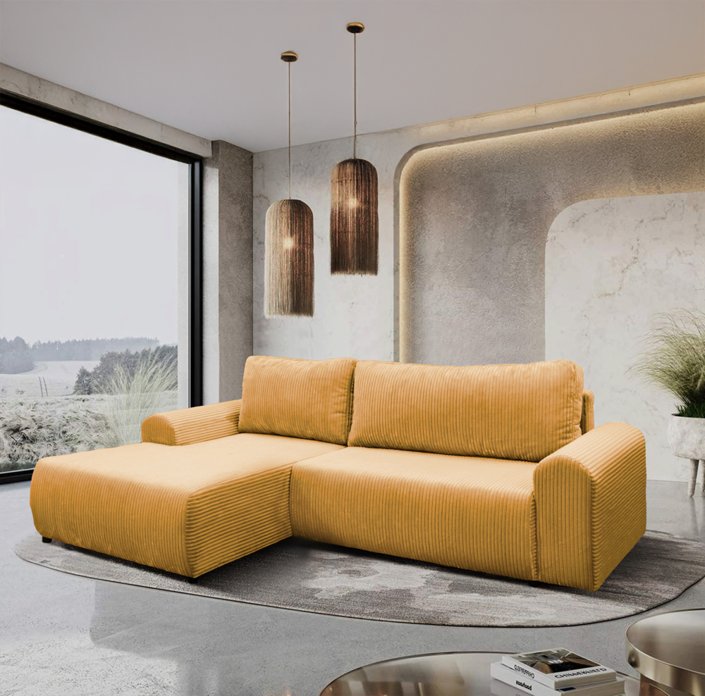 Ülőgarnitúra, mustárszínű, balos, VELINA ROH