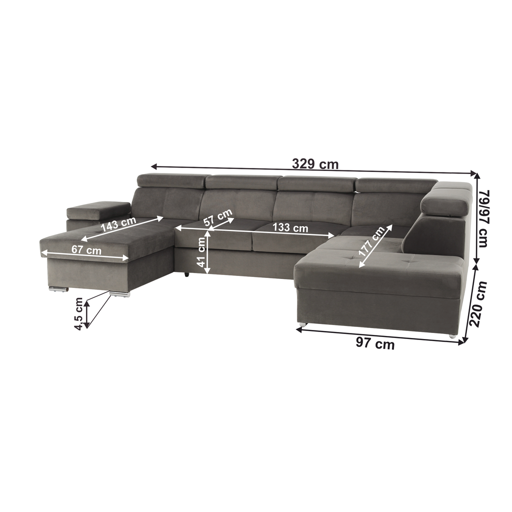 Méretek: (SzxMéxMa): 329x220x79/97 cm
