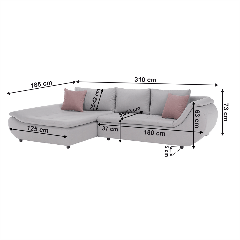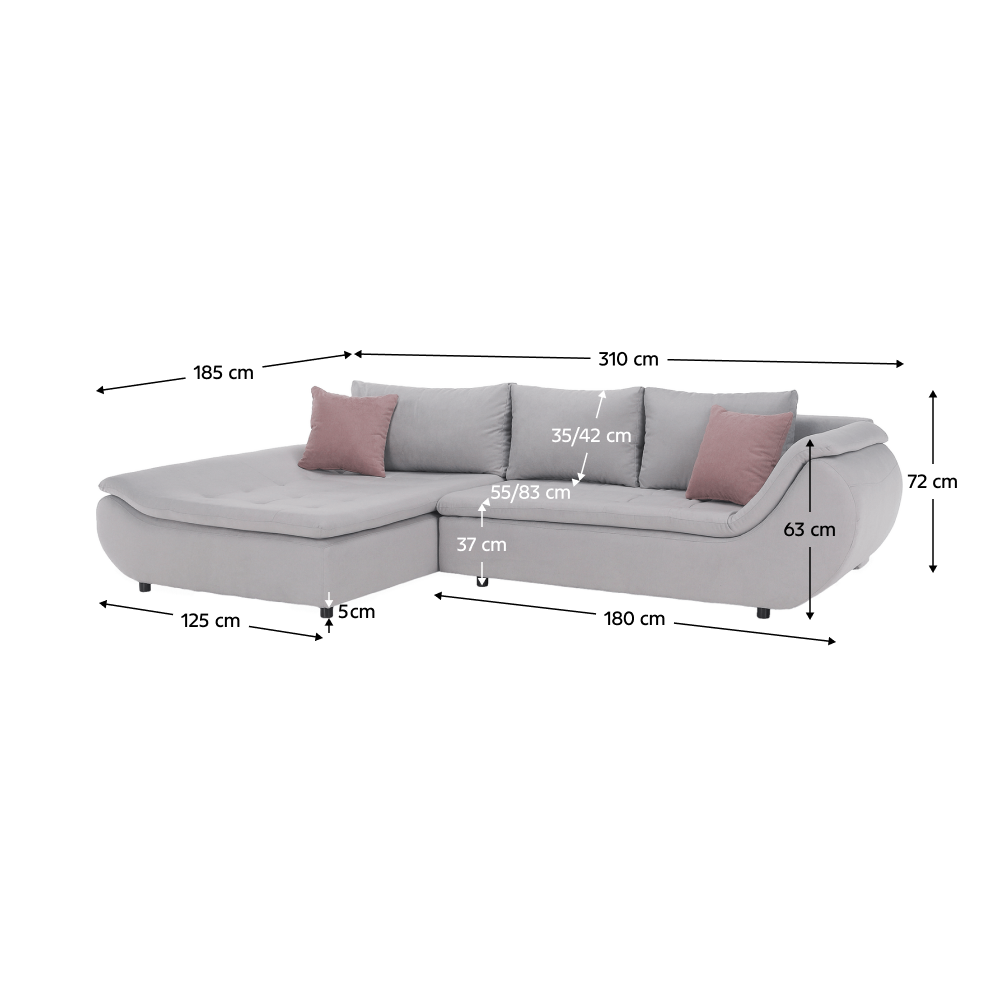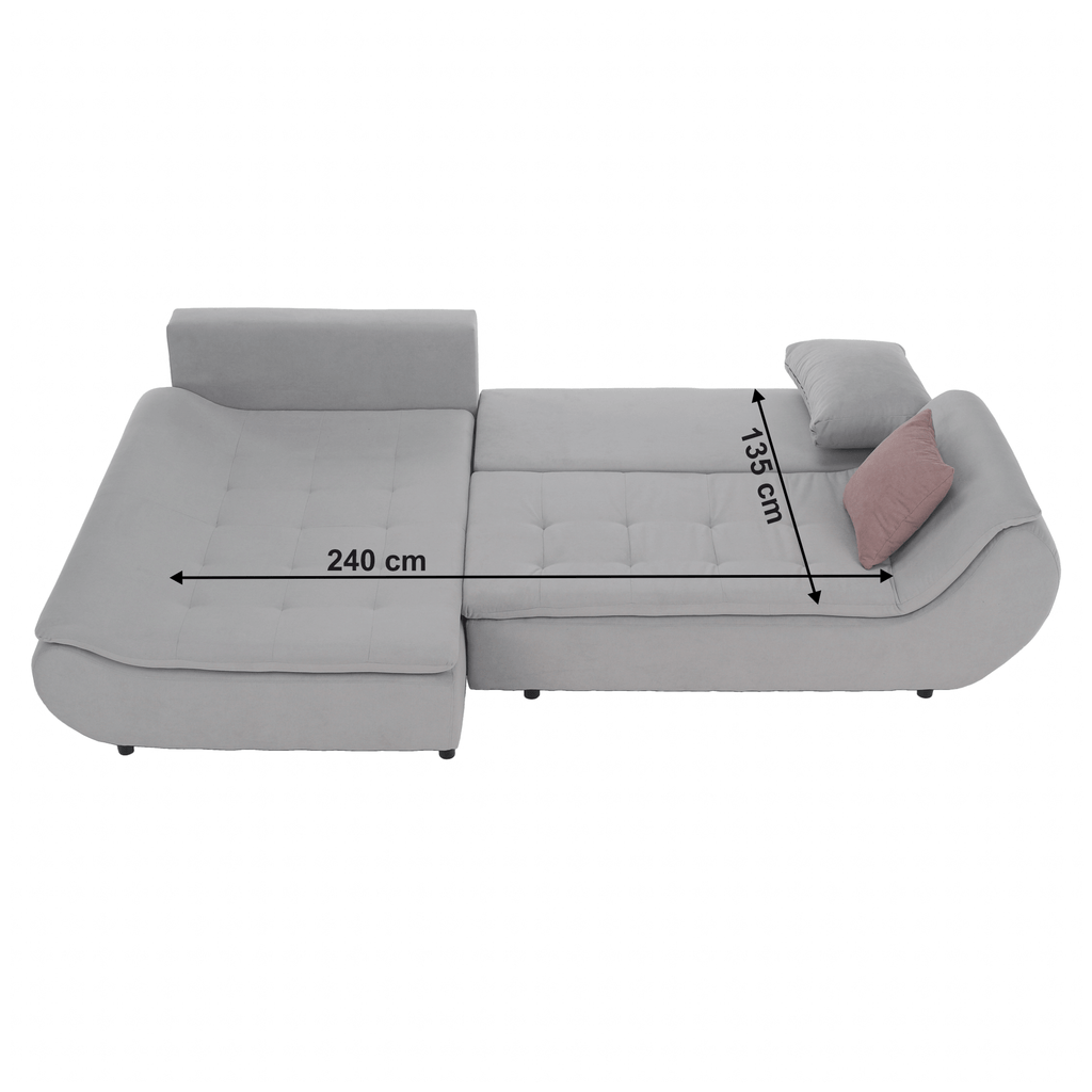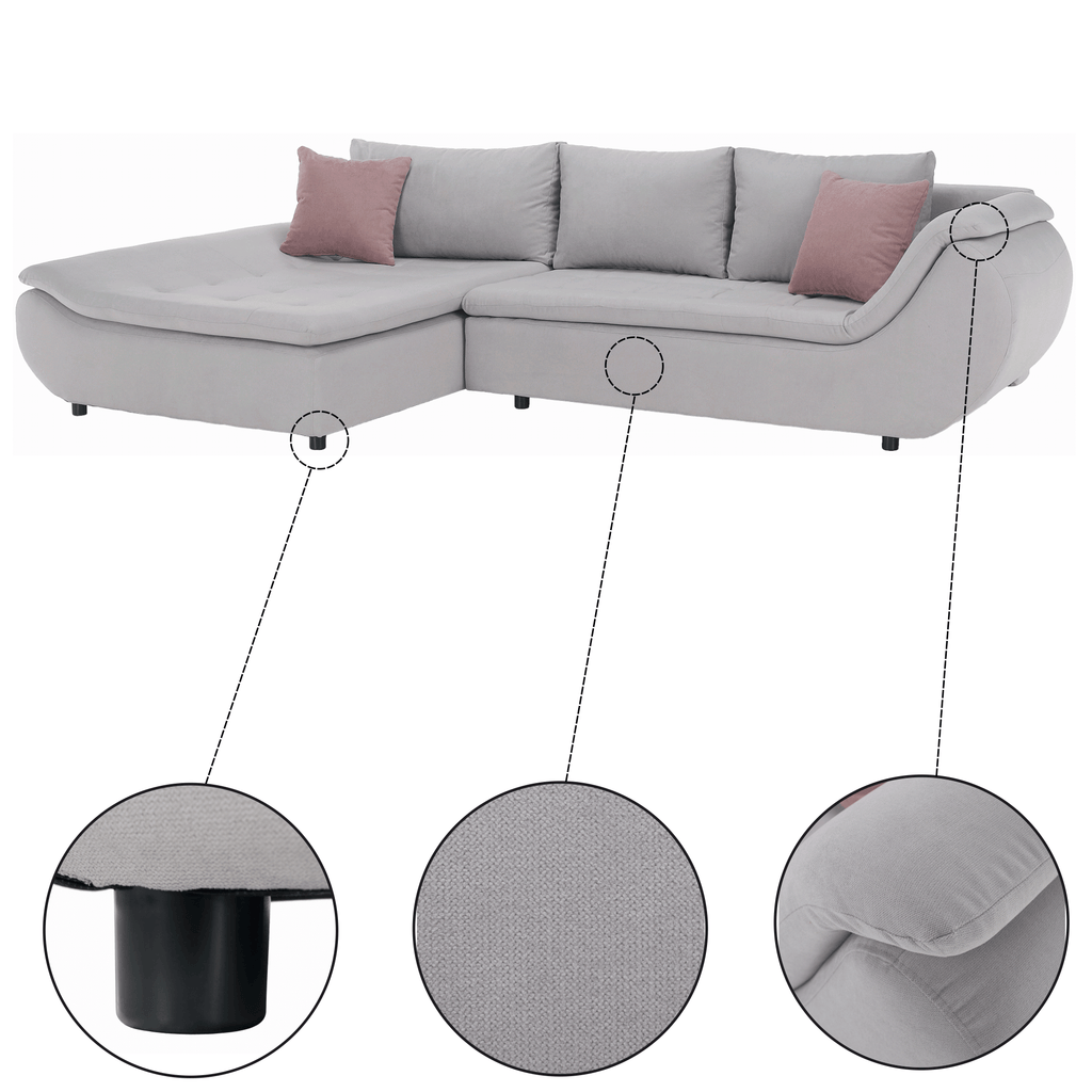 Ülőgarnitúra, világosszürke/púderrózsaszín, szövet, balos, BRATO