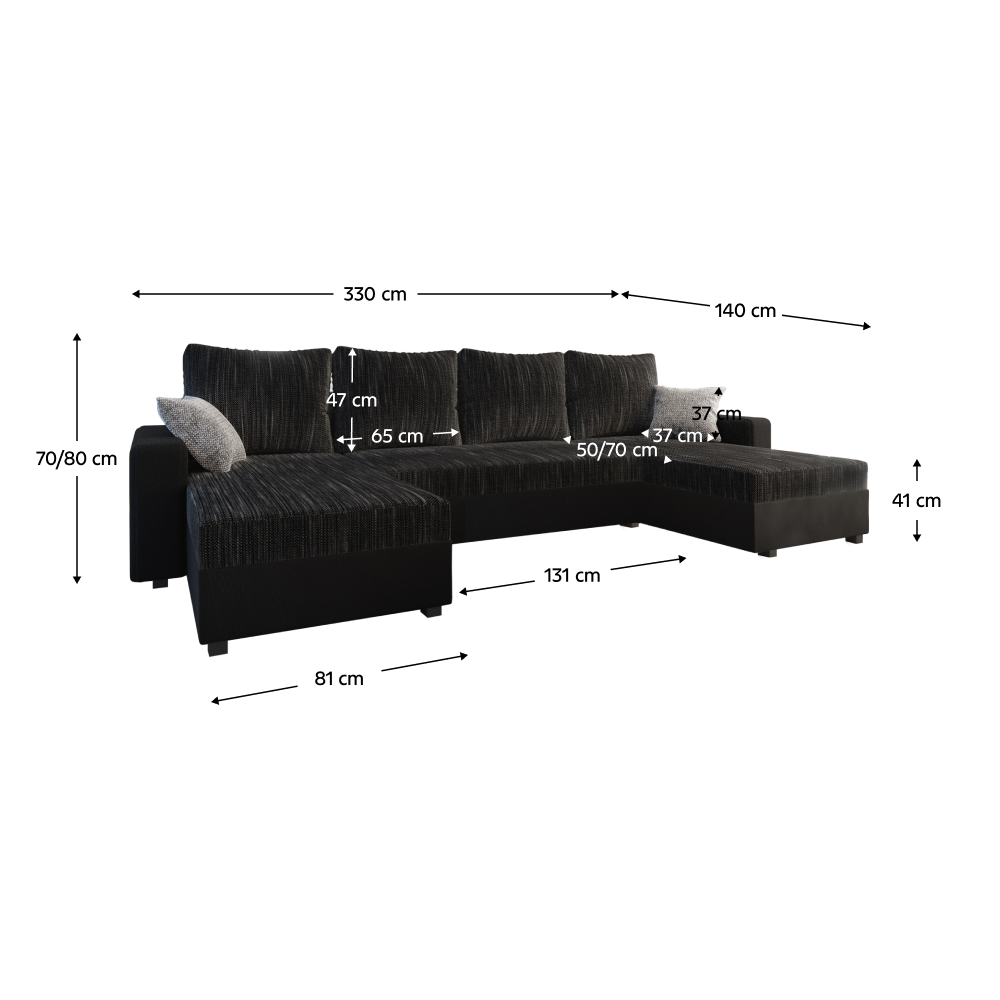 Méretek (SzxMéxMa): 330x140x70/80 cm