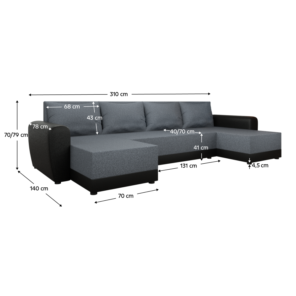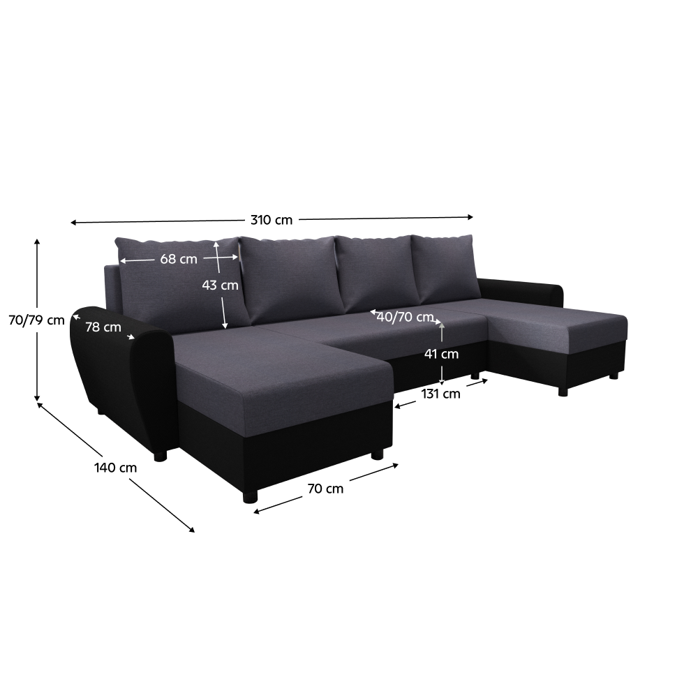 Ottomán mélysége párnák nélkül: 131 cm