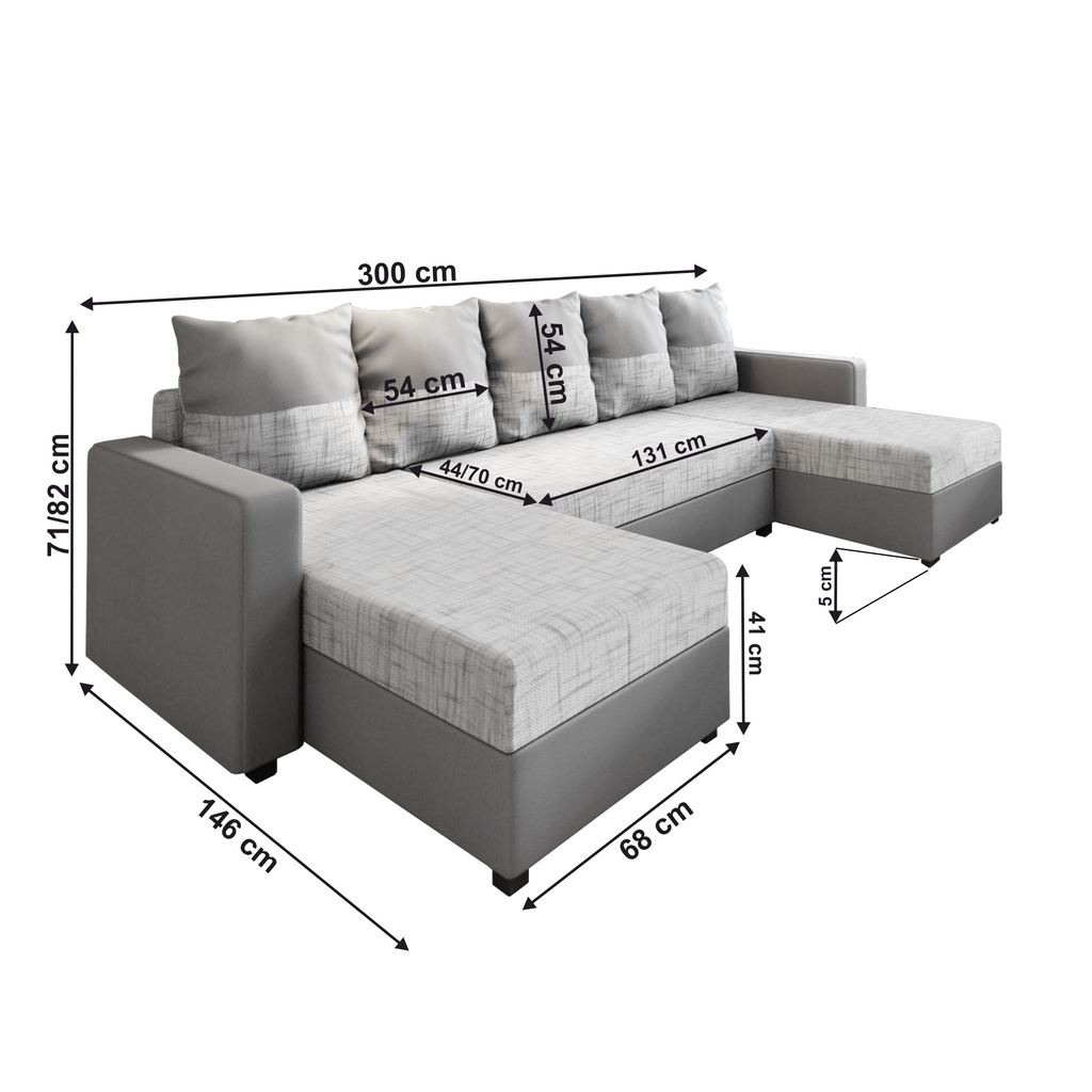 Méretek (SzxMéxMa): 300x146/146x71/82 cm