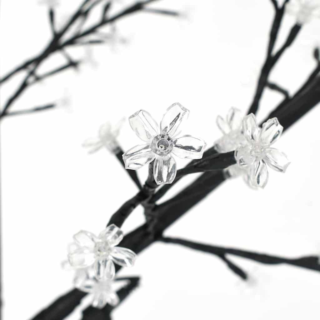 Ez a fa energiatakarékos LED-ekkel világít, amelyek kék fénnyel világítják meg a szobát, és közvetett világításként is szolgálnak. A cseresznyevirágok lágy anyagból készültek; így rugalmasak és nehezen törnek el. Az ágak külön-külön nyithatóak ki, a fémtalp pedig növeli a stabilitást. A szállítmány egy adaptert is tartalmaz, melynek 8 funkciója van. Ez a karácsonyi dísz tökéletesen alkalmas bel- és kültéri használatra egyaránt.