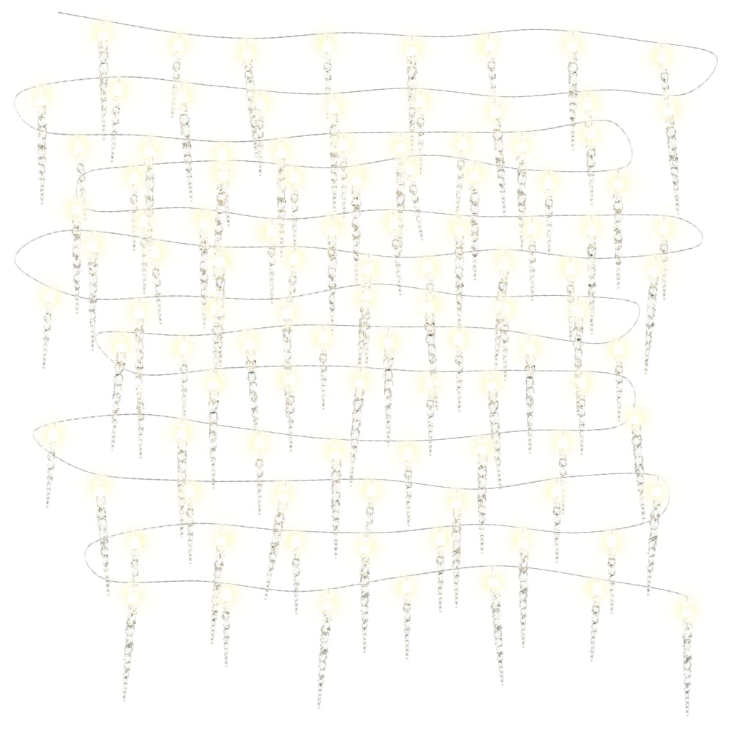 - 100 LED-es jégcsap égő: Ez a fényfüzér összesen 100 energiatakarékos LED-es jégcsapot tartalmaz, amelyek varázslatos fényjátékot hoznak létre!