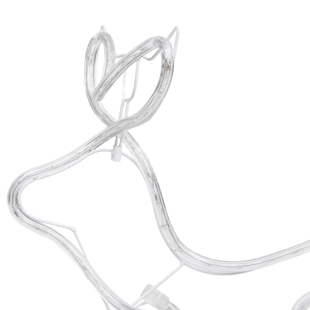 A rénszarvasokat és a szánt színes LED-lámpák világítják meg, hogy lágyan ragyogjanak, így tökéletes választás bel- és kültéren egyaránt. A LED-zsinór méterenként 36 izzót, összesen 252 db rendkívül fényes és energiatakarékos LED-et tartalmaz.