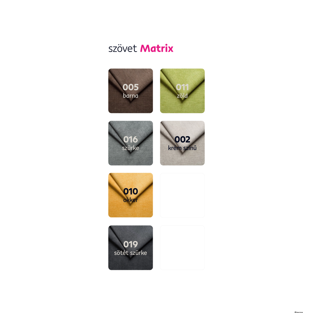 Rendelhető 6 színváltozatban Matrix szövetből. Ár fotel: 176 900 Ft. Egyedi megrendelés esetén szükség van az adott összegnek a 20%-át befizetni,mint előleg. Az előleg befizetése után az Ön követelményét benyújtjuk a gyártónak. Szállítási idő 6-8 hét.