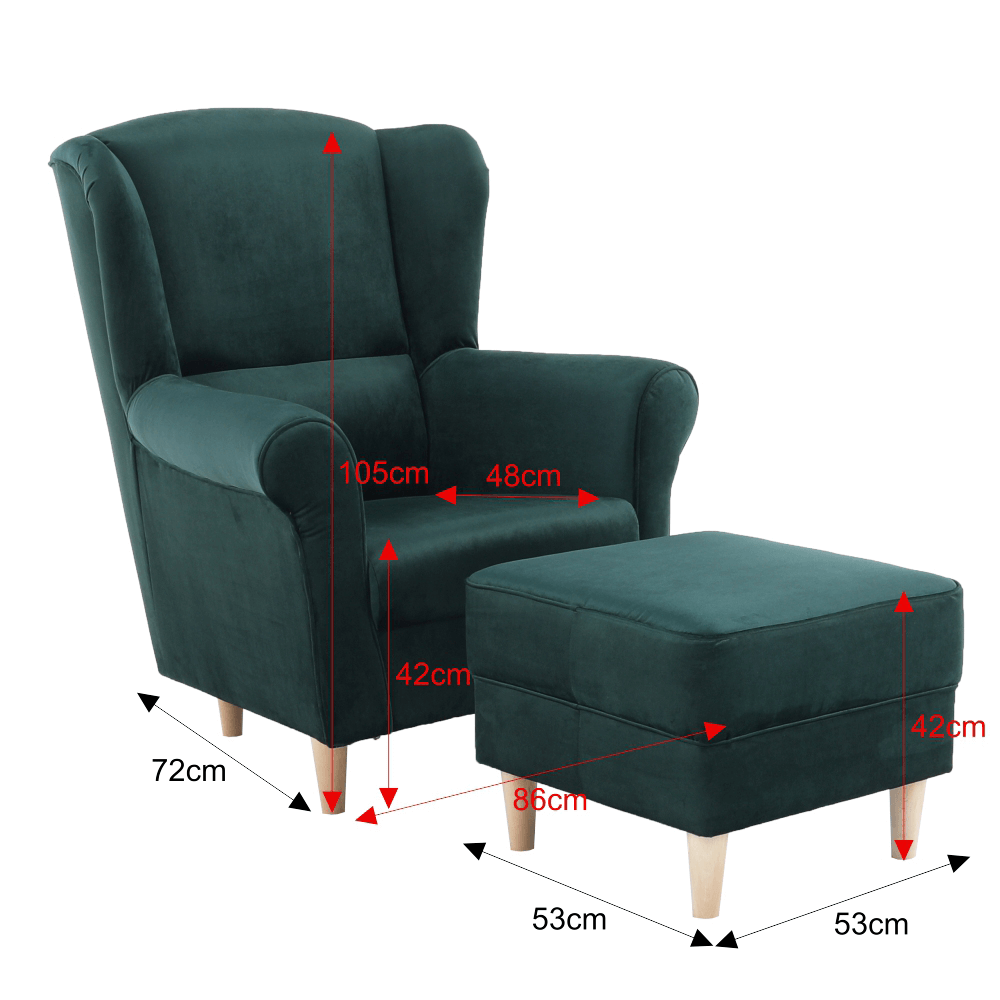 Méretek (SzéxMaxMé): Fotel - 86x105x82 cm, Puff - 53x42x53 cm,