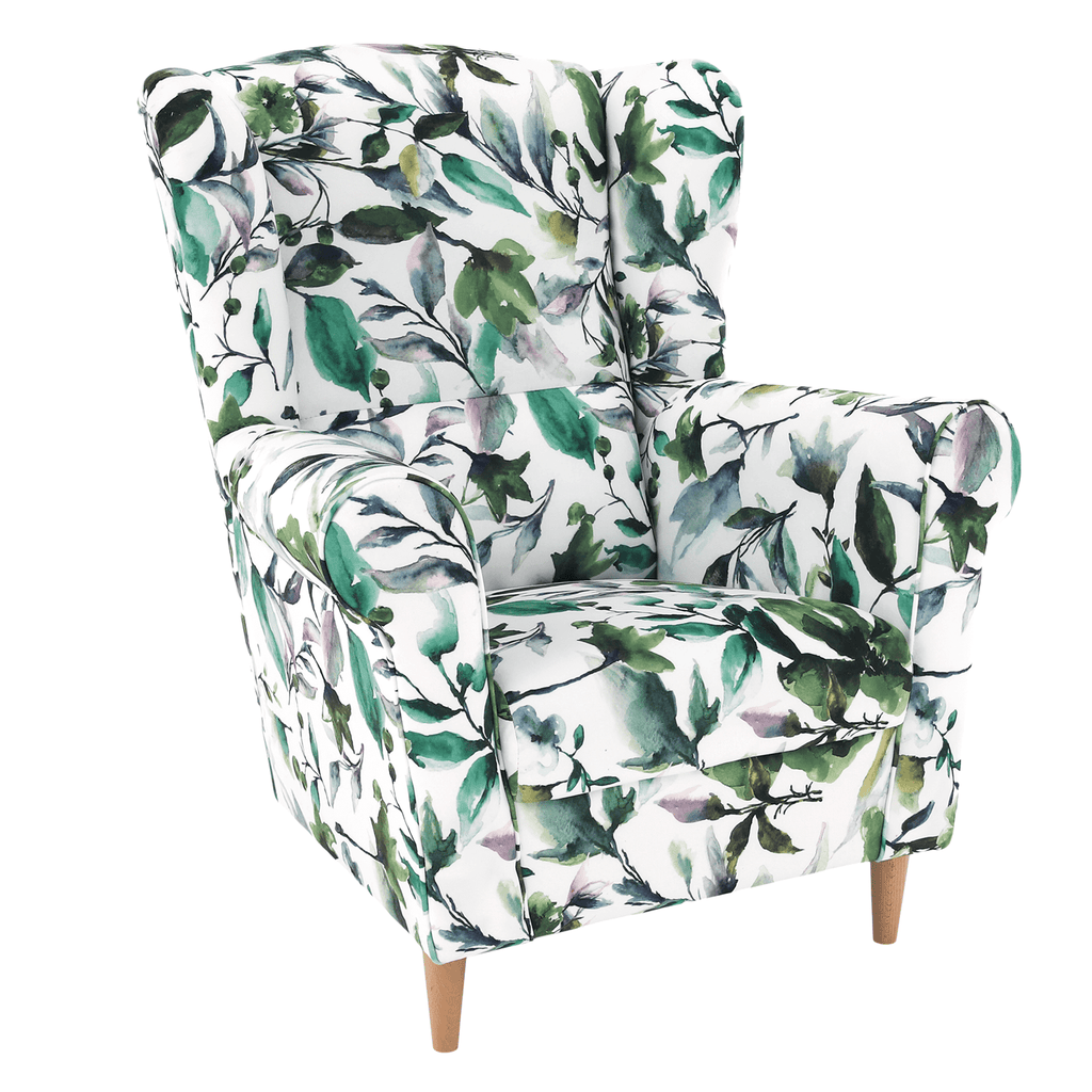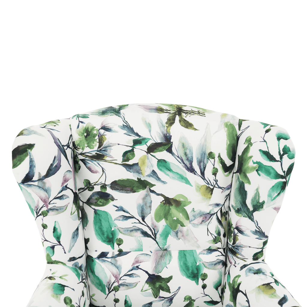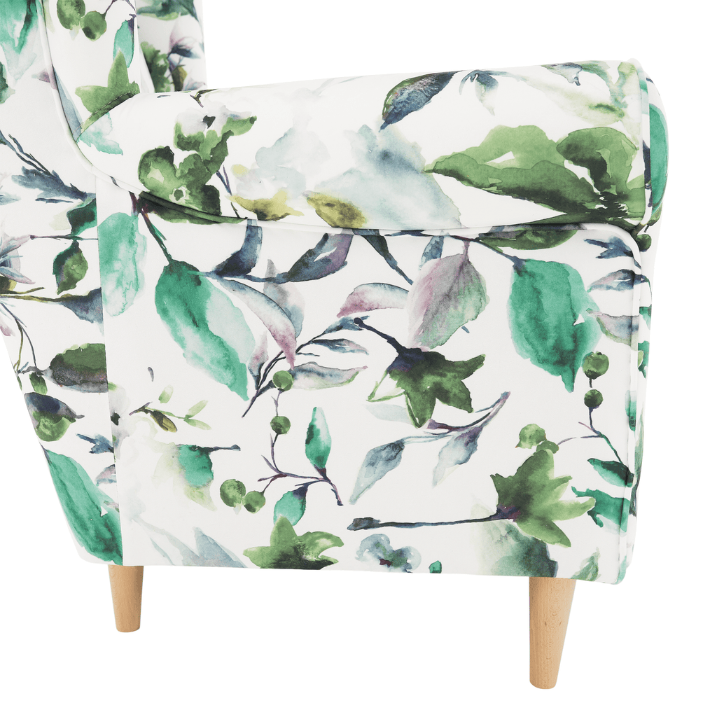Füles fotel CHARLOT szövetben zöld levél mintázattal