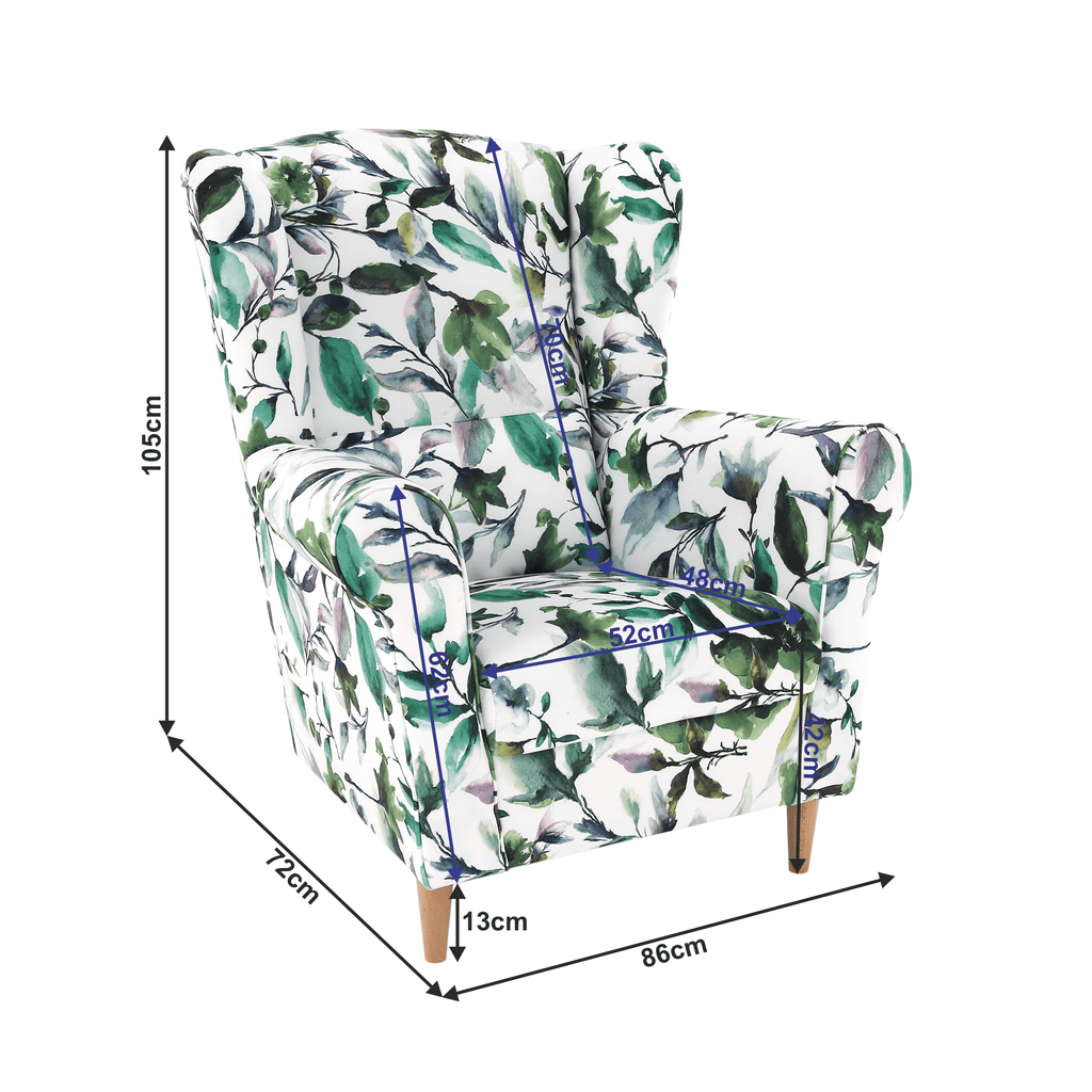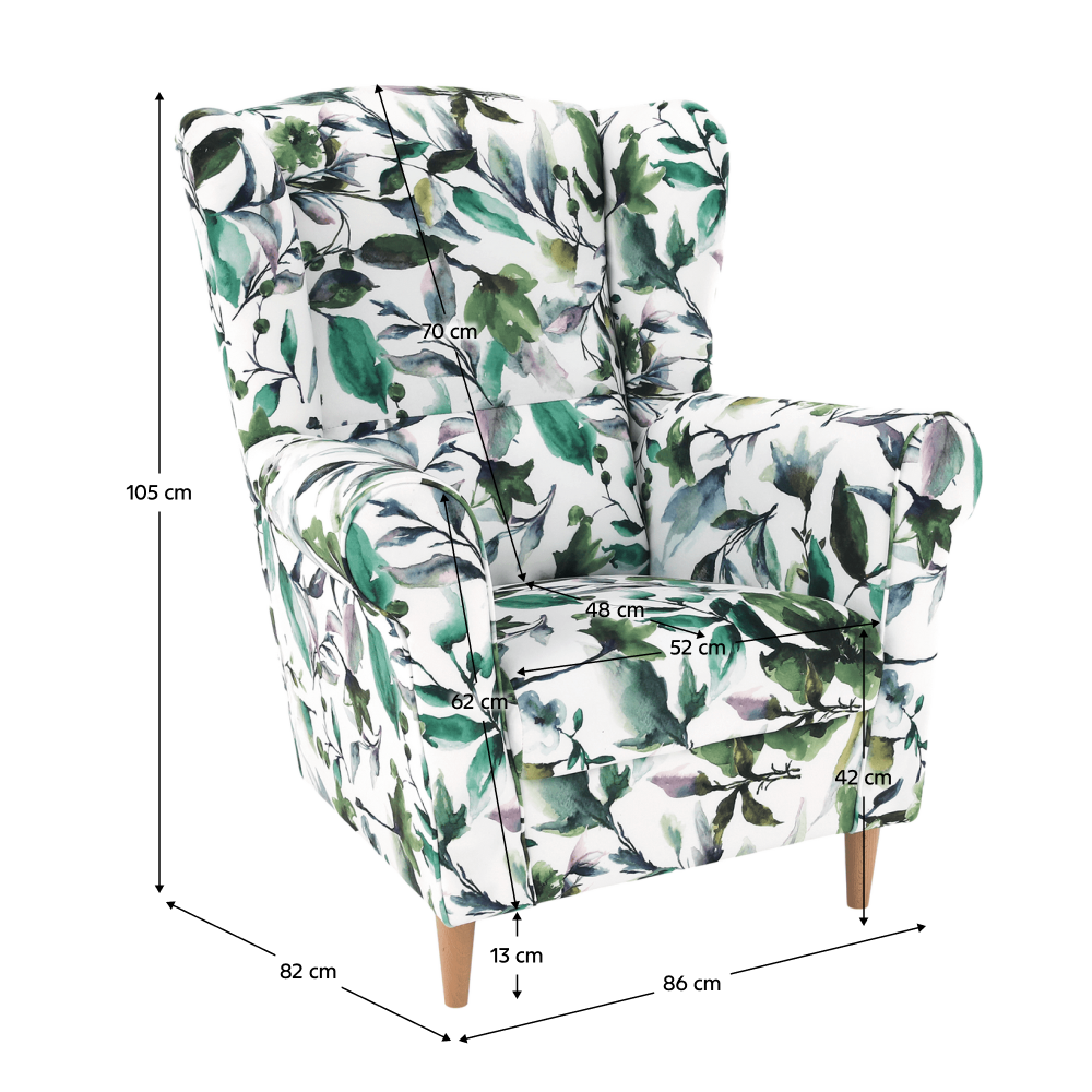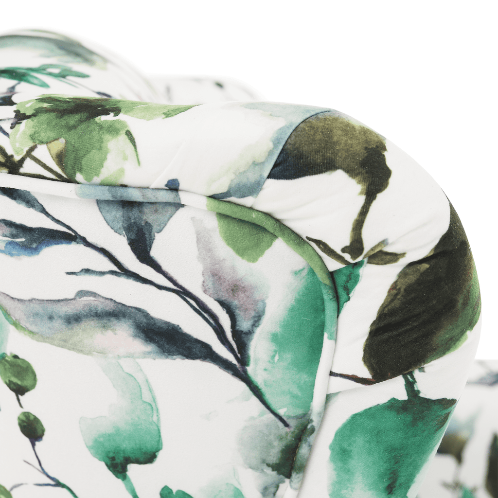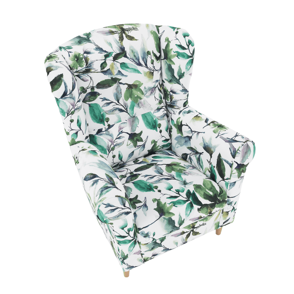 Füles fotel CHARLOT szövetben zöld levél mintázattal