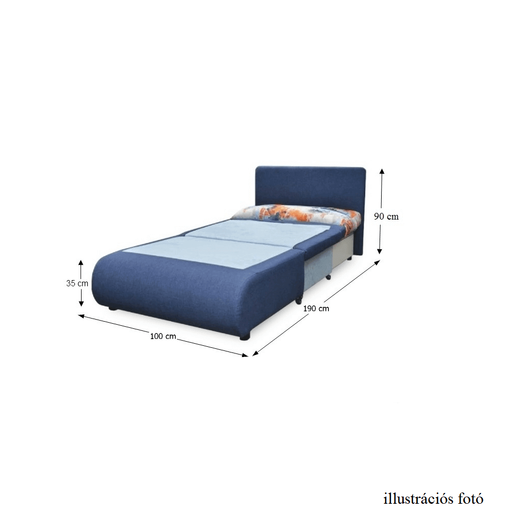 Alvóhely mérete (SzéxHo): 100x196 cm.