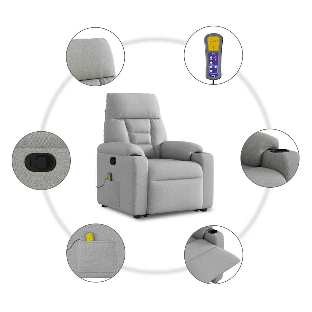 vidaXL Álló masszázsfotel felhőszürke szövet