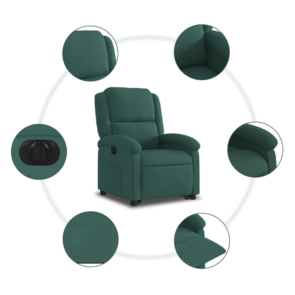 vidaXL elektromos felállást segítő sötétzöld bársony fotel