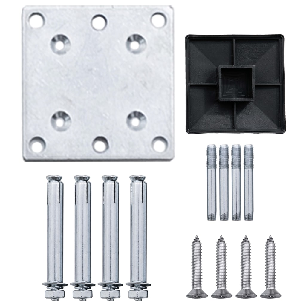 Az elemes kialakításnak köszönhetően a kerítéspanelek könnyen felszerelhetők, és lehetővé teszik a kerítés bővítését. Az oszlopokon három rés található, ezáltal a kerítést különféle elrendezésben állíthatja fel - például egyenes vonalban (180 fokban), derékszögben (90 fokban) vagy T-alakban. A többfunkciós acéllábak kétféleképpen rögzíthetők. Az első módszer, hogy a mellékelt horgonycsavarok segítségével felcsavarozza őket egy felületre. A második módszer, hogy földi tüske (nem tartozék) segítségével cement alapba rögzíti őket.
