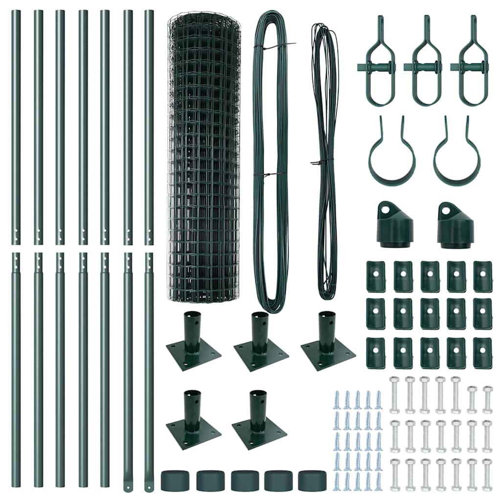 vidaXL Kerítés oszlopokkal Zöld 1 x 10 m Acél