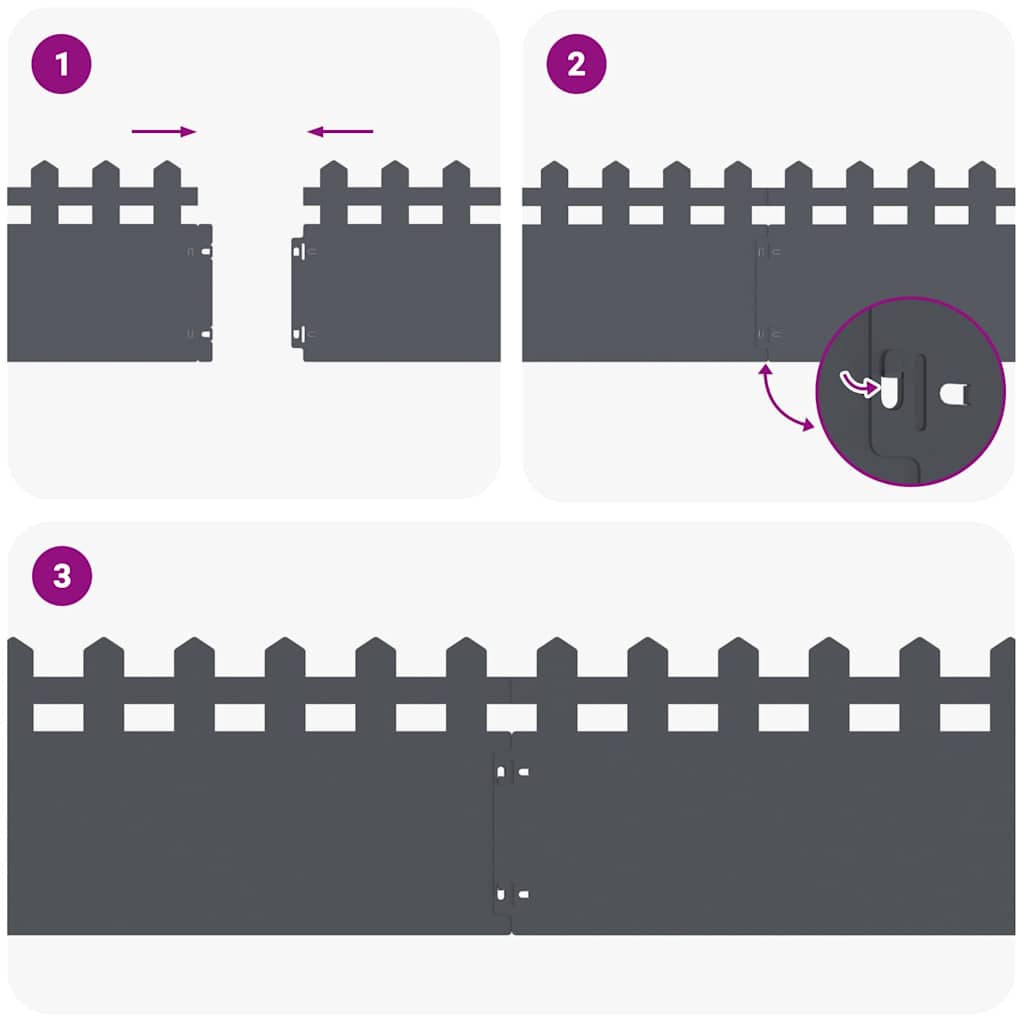 vidaXL Gyepszegélyek 10 pcs Antracit 103 x 0,05 x 22 cm Acél