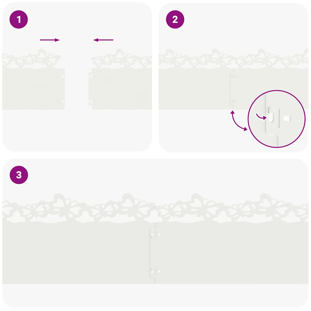 Tartós anyag: Robusztus fémből készült, ezek a gyepelválasztók a kültéri használat rigórusainak ellenállására lettek gyártva. A fém konstrukció hosszan tartó biztosít, hogy a kert határvonalai stabilak maradjanak. Ellenállnak az időjárás változásainak, ígérve a hosszú élettartamot nyáron és ősszel is. Modern stílus: Tiszta, visszafogott eleganciát mutat ez a választó, modern dizájn elvei alapján készült, egyszerű formáiról és letisztultságáról ismert. Minimalista vonzereje szépen illeszkedik a kortárs kertművészethez, bútorokhoz és struktúrákhoz, így sokoldalú választás a különféle tájakhoz és ízléshez. Gyerekjáték telepíteni: Az összeállításhoz csavarhúzó és két ember szükséges. Ez az előny lehetővé teszi a háztulajdonosoknak, hogy szakszerűen elkészített eredményeket érjenek el, anélkül, hogy profi segítséget kellene kérniük, így biztosítva a kert határainak kontrollját.- Szín: Fehér