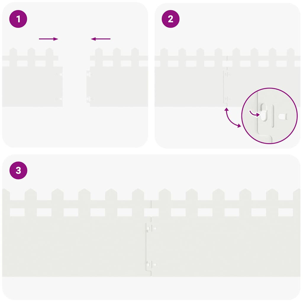 vidaXL Gyepszegélyek 30 pcs Fehér 103 x 0,05 x 22 cm Acél