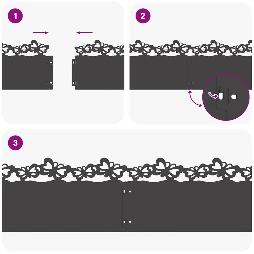 Tartós anyag: Robusztus fémből készült, ezek a gyepelválasztók a kültéri használat rigórusainak ellenállására lettek gyártva. A fém konstrukció hosszan tartó biztosít, hogy a kert határvonalai stabilak maradjanak. Ellenállnak az időjárás változásainak, ígérve a hosszú élettartamot nyáron és ősszel is. Modern stílus: Tiszta, visszafogott eleganciát mutat ez a választó, modern dizájn elvei alapján készült, egyszerű formáiról és letisztultságáról ismert. Minimalista vonzereje szépen illeszkedik a kortárs kertművészethez, bútorokhoz és struktúrákhoz, így sokoldalú választás a különféle tájakhoz és ízléshez. Gyerekjáték telepíteni: Az összeállításhoz csavarhúzó és két ember szükséges. Ez az előny lehetővé teszi a háztulajdonosoknak, hogy szakszerűen elkészített eredményeket érjenek el, anélkül, hogy profi segítséget kellene kérniük, így biztosítva a kert határainak kontrollját.- Szín: Fekete