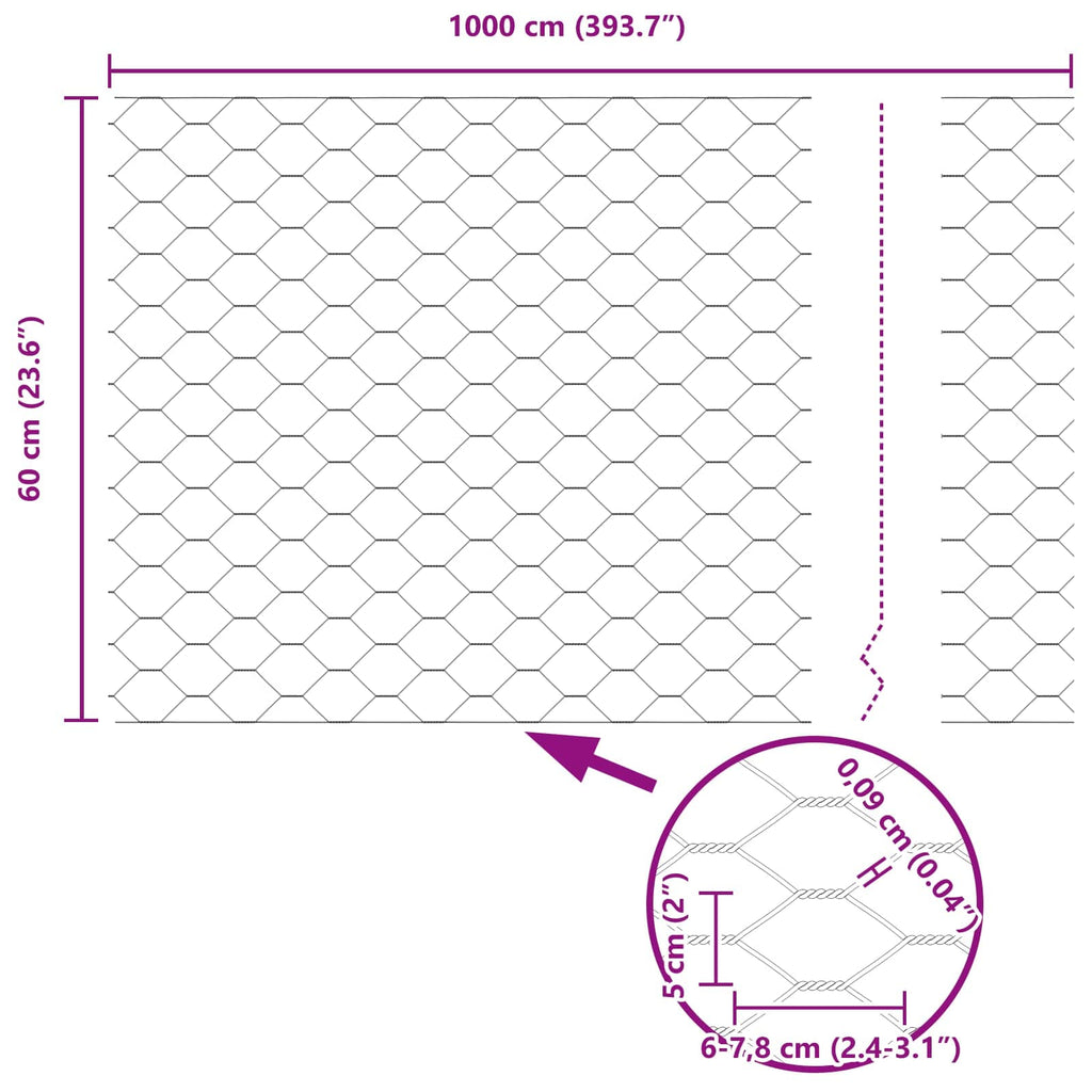 vidaXL Hexagon kerítés Zöld 0,6 x 10 m Acél
