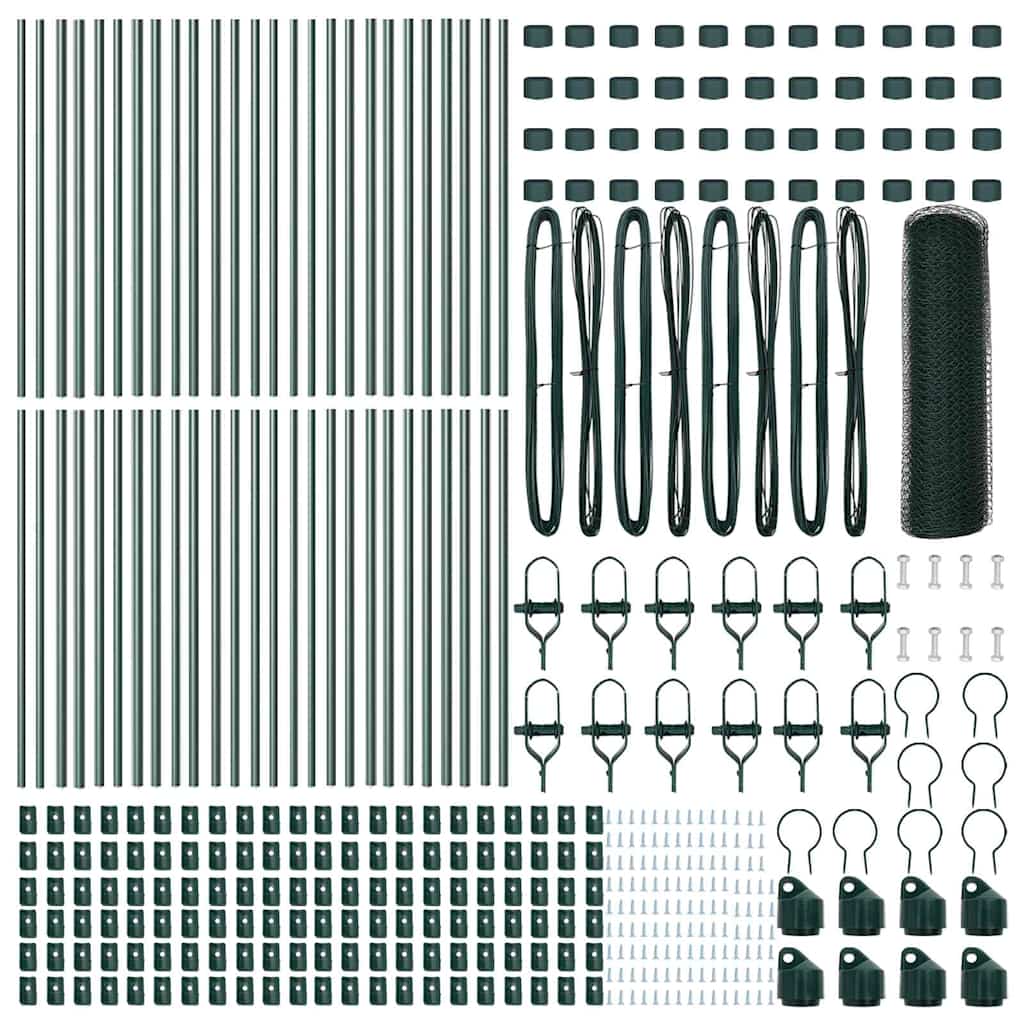 vidaXL Kerítés oszlopokkal Zöld 0.5 x 100 m PVC-bevonatos acél