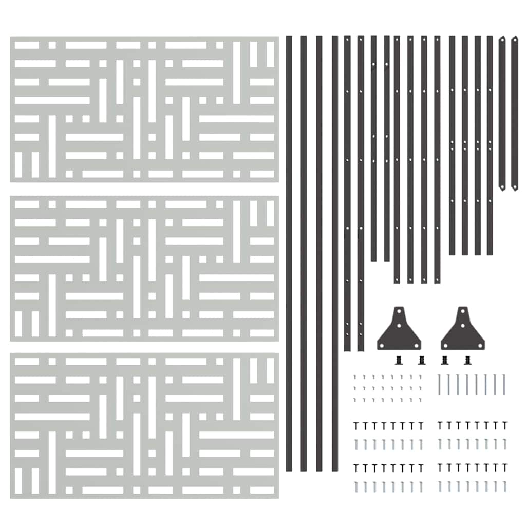 Ez a Kerti Zárófal egy menő és praktikus kiegészítője bármilyen kültéri helynek. Modern dizájnja letisztult vonalairól és egyszerűségéről ismert, ezért szuperül passzol a kortárs kertekhez és teraszokhoz. A fal megvédi a magánéletedet, miközben feldobja az összhatást a szabadban. Az acél konstrukciója tartós és modern megjelenésű, így bármilyen kültéri környezetbe illik.