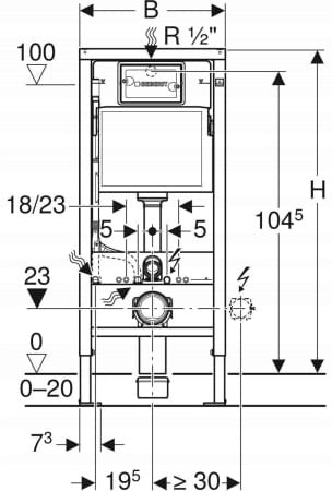 - Keret rögzítőfuratokkal a Geberit Duofix távtartókhoz nyitott felső kerettel rendelkező elemek rögzítéséhez