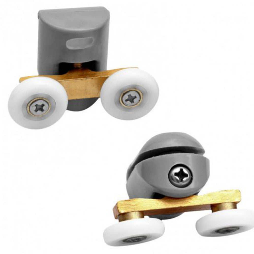 Dupla felső görgők zuhanykabinhoz és hidromasszázs zuhanykabinokhoz Átmérő 21 mm 5 mm vastagságú üvegre Rögzítő furat átmérője. 10 - 10,5 mm Távolság a furat közepétől az üveg széléig - 19 mm. Egy csomag 2 db görgőt tartalmaz
