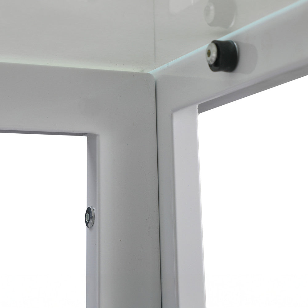 Az edzett üveg technológia garantálja, hogy az asztallap ellenáll a karcolásoknak, hőhatásoknak és mechanikai sérüléseknek. A 20x40 mm-es fém lábak speciális bevonattal rendelkeznek, amely megakadályozza a korróziót és a kopást, így az asztal hosszú éveken át megőrzi eredeti szépségét és stabilitását.