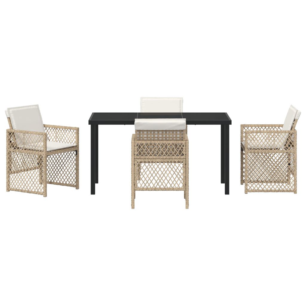 vidaXL 5 Részes Kerti Étkezőszett Párnákkal Bézs Poly Rattan, vidaXL Kerti Asztal Fekete 140x80x73 cm Edzett Üveggel