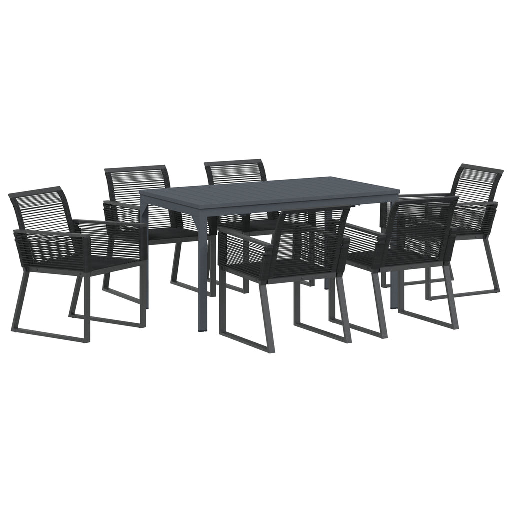 Ez a kerti étkező szett elegáns stílust és szilárd praktikát kínál, így ideális kikapcsolódásokhoz a szabadban. Tartalmaz egy nagyszerű négyszögletes asztalt és hat kényelmes széket divatos szőtt mintával, remekül alkalmas erkélyekre vagy teraszokra, barátságos hangulatot teremtve egy-egy étkezéshez vagy brunchhoz.