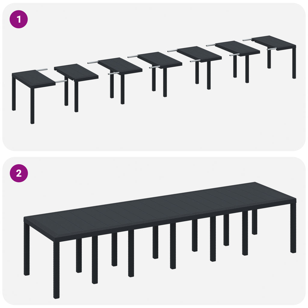 Ez a nagy teraszasztal strapabíró porszórt fémből készült, és sima antracit megjelenése van, ami tényleg elegáns kiegészítő a kültéri területeidnek. Remek családi összejövetelekhez vagy bulikhoz, ötvözi a funkcionalitást a stílussal. Plusz, az időjárásnak ellenálló, így hosszú távon is jó állapotban marad.