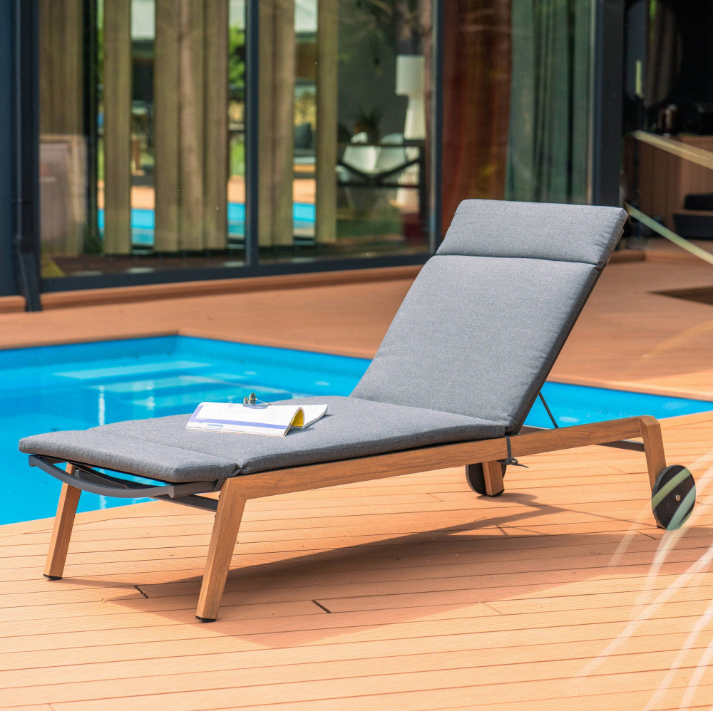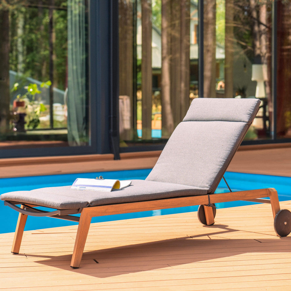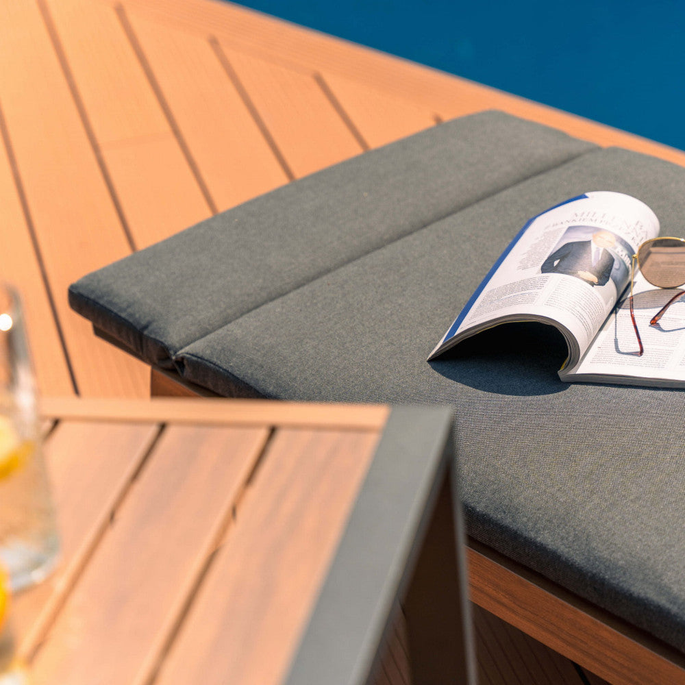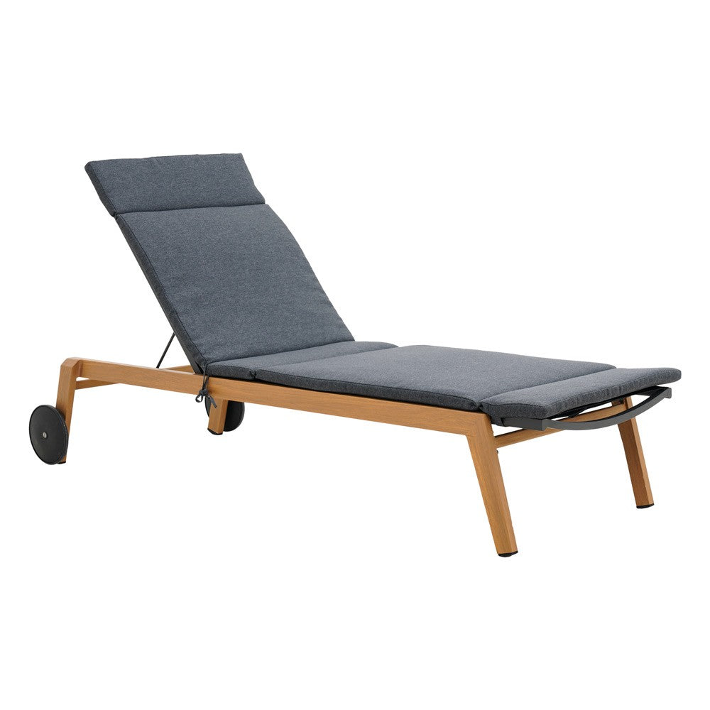 A nyugágyat modern és elegáns kialakítása jellemzi. Az antracit ülés és a fautánzó keret kombinációja tökéletesen illeszkedik a modern és minimalista elrendezésbe. A dizájnos nyugágy mindenki számára ajánlott, aki értékeli a funkcionalitás és a kiváló stílus kombinációját.